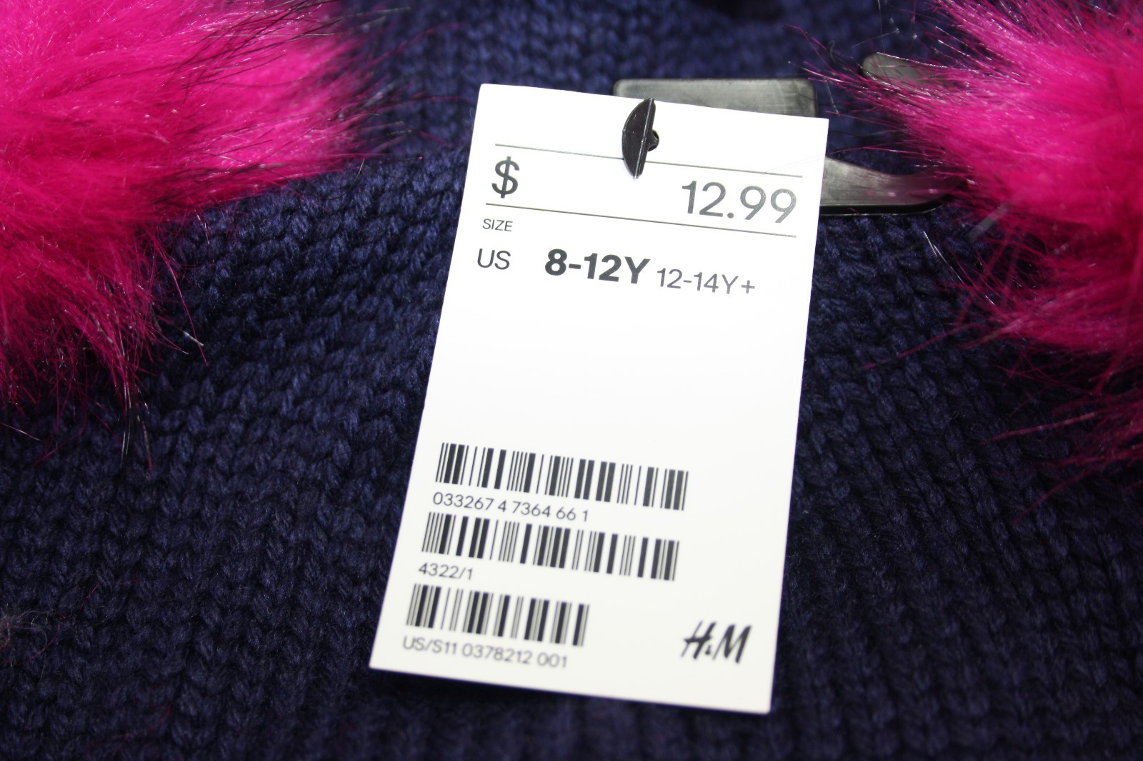 как выглядит Girls Toddler Warm Fur Pink Ball Pom Knit Beanie Hat Blue Monster Size 8-12 фото