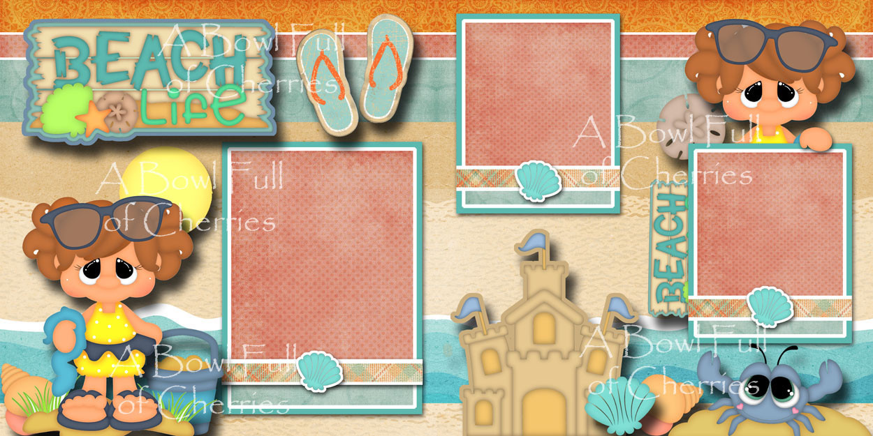 BEACH LIFE girl 2 premade scrapbooking pages paper piecing printed BY CHERRY