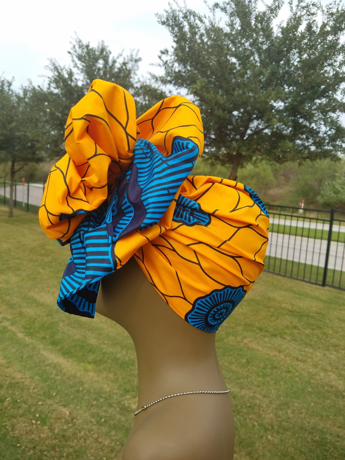 Orange teal Head wrap;Orange African Headwrap; African Clothing; African Fabric