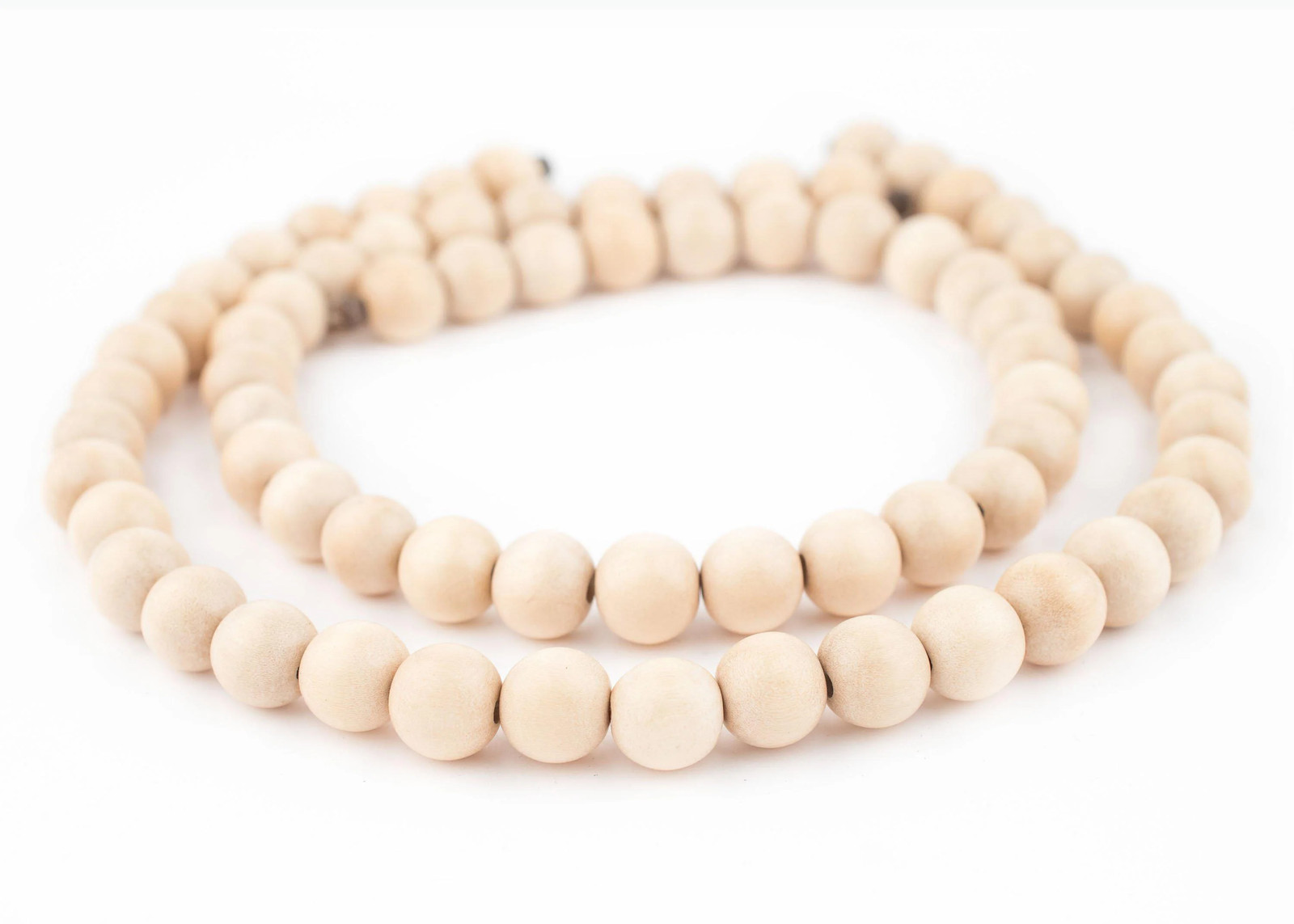 Cream Round Natural Wood Beads 12mm White Large Hole 16 Inch Strand