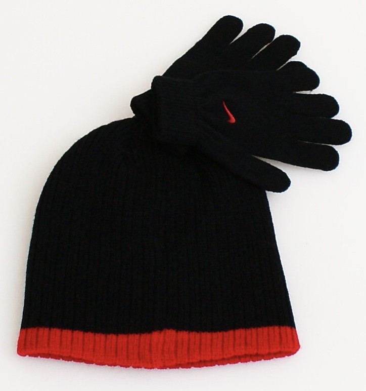 как выглядит Nike Black Red Knit Beanie Stretch Gloves Youth Boys 8-20 NWT фото