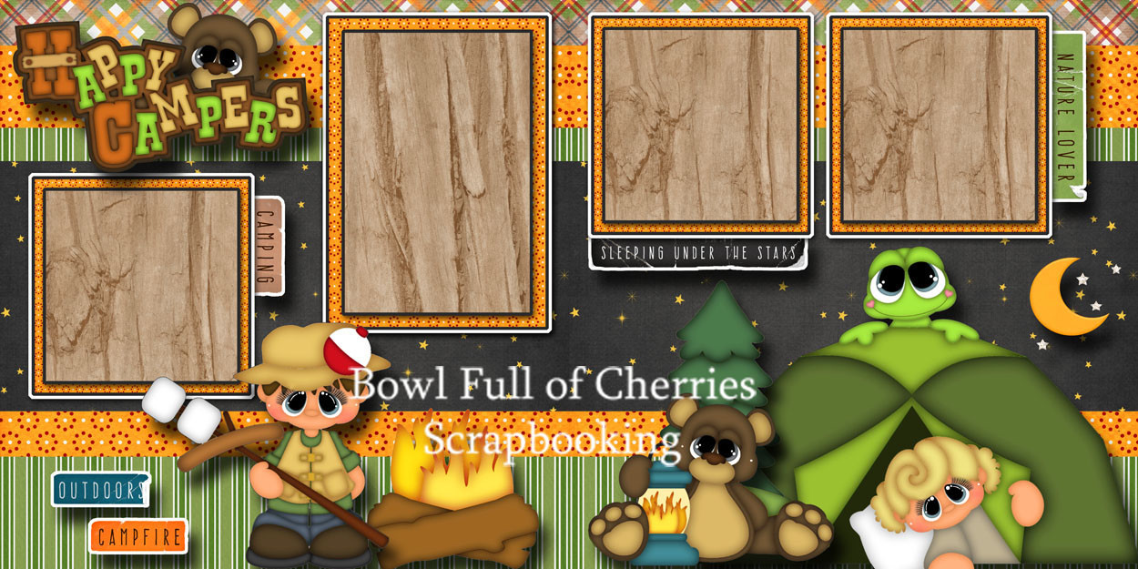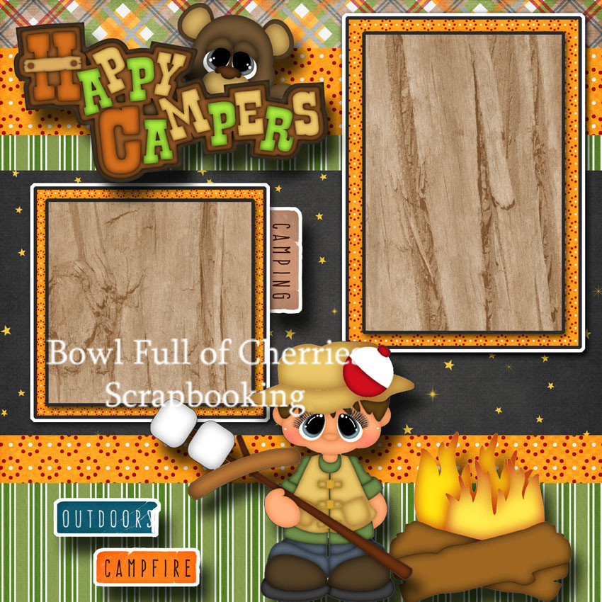 Happy Campers 2 premade scrapbook pages paper piecing camping layout by cherry