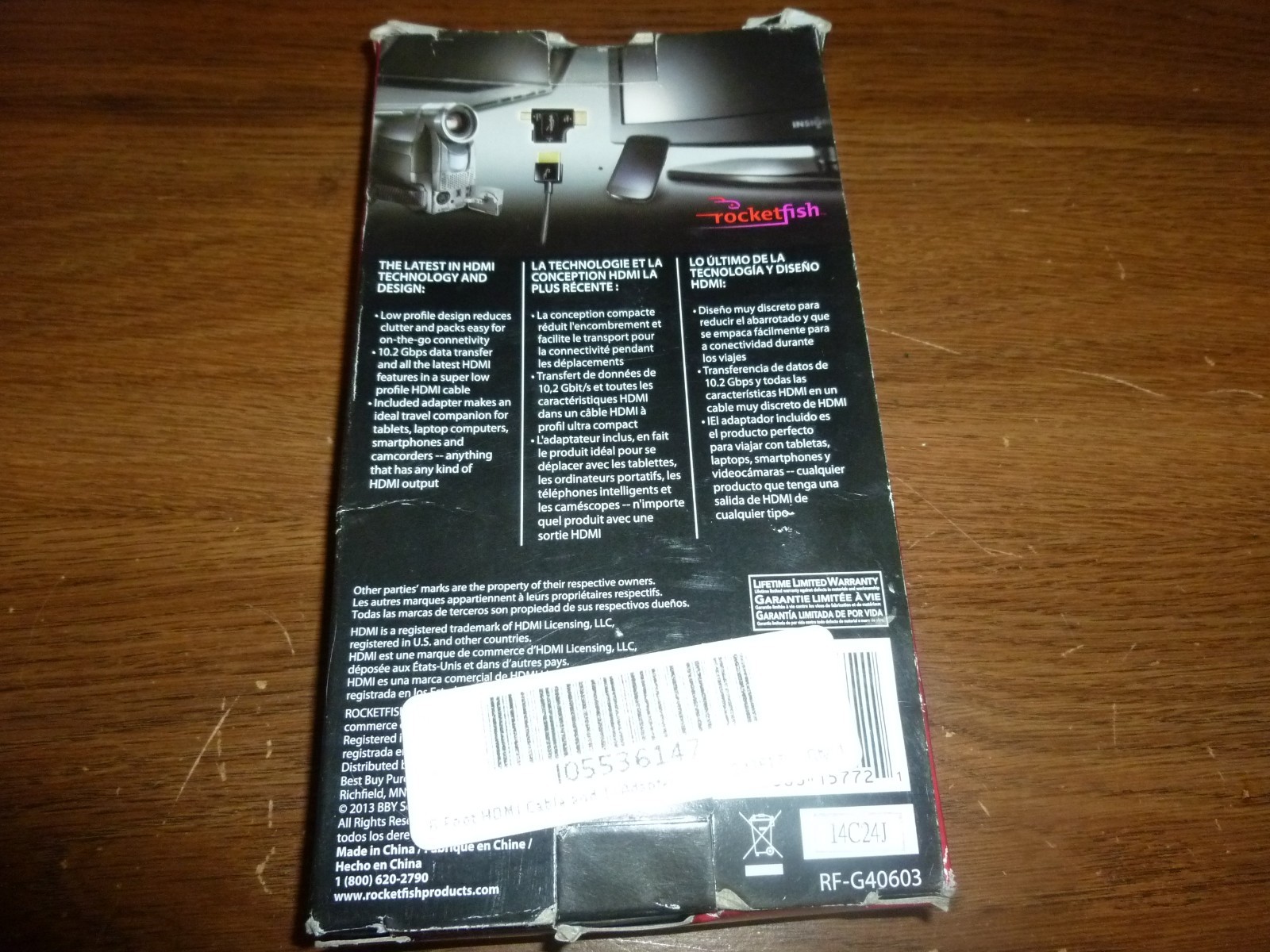 Rocketfish RF-G40603 Low Profile HDMI Cable w/Universal Mini Micro HDMI Adapter