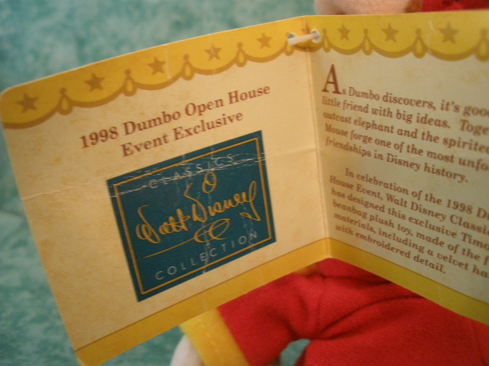 WALT DISNEY 1998 DUMBO OPEN HOUSE EXCLUSIVE BEAN BAG PLUSH TIMOTHY MOUSE 8 NWT
