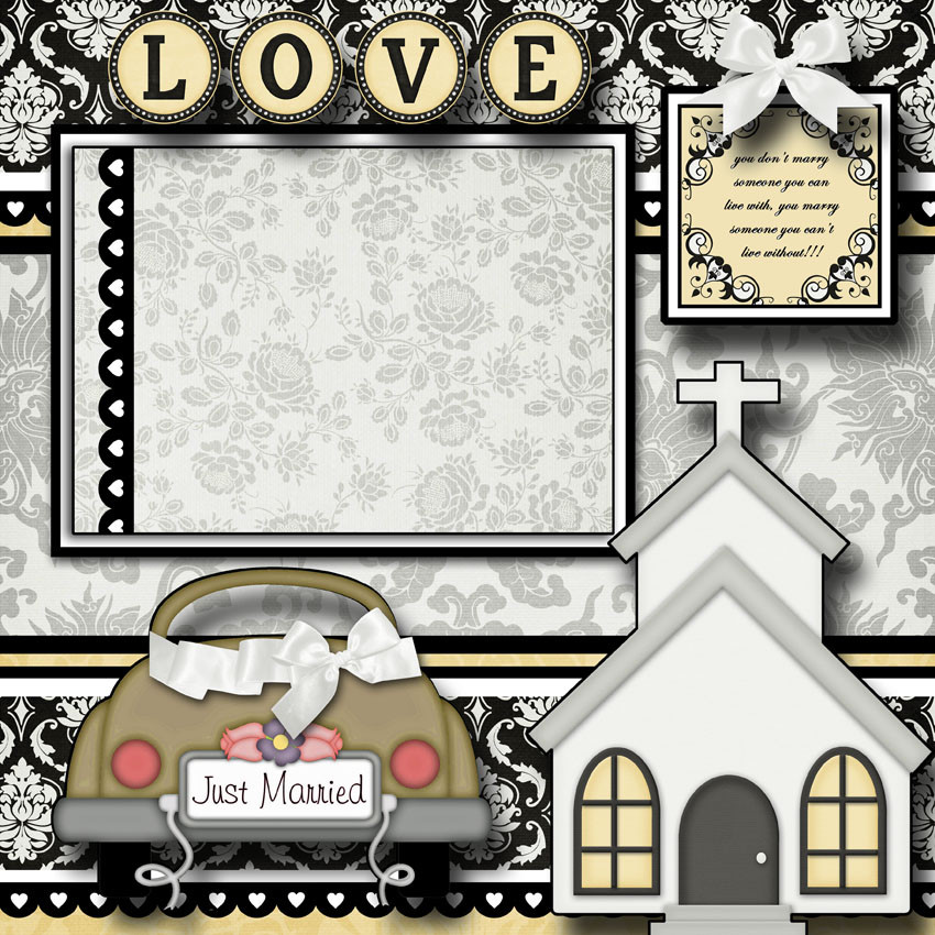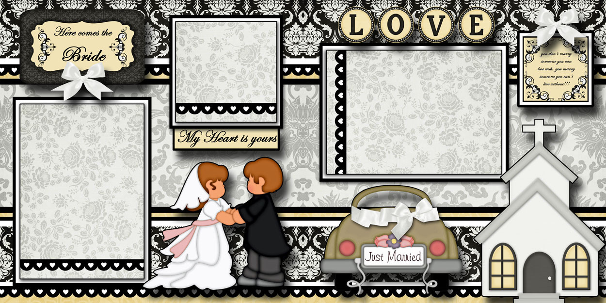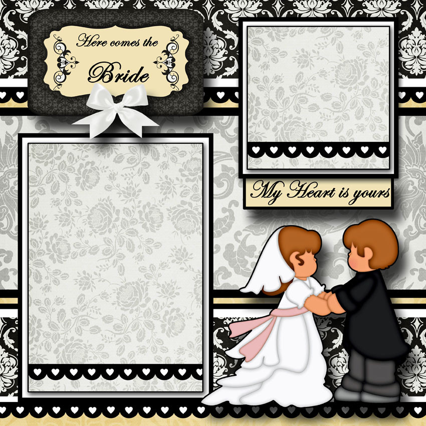 WEDDING 2 premade scrapbook pages paper piecing layout printed BRIDE Cherry