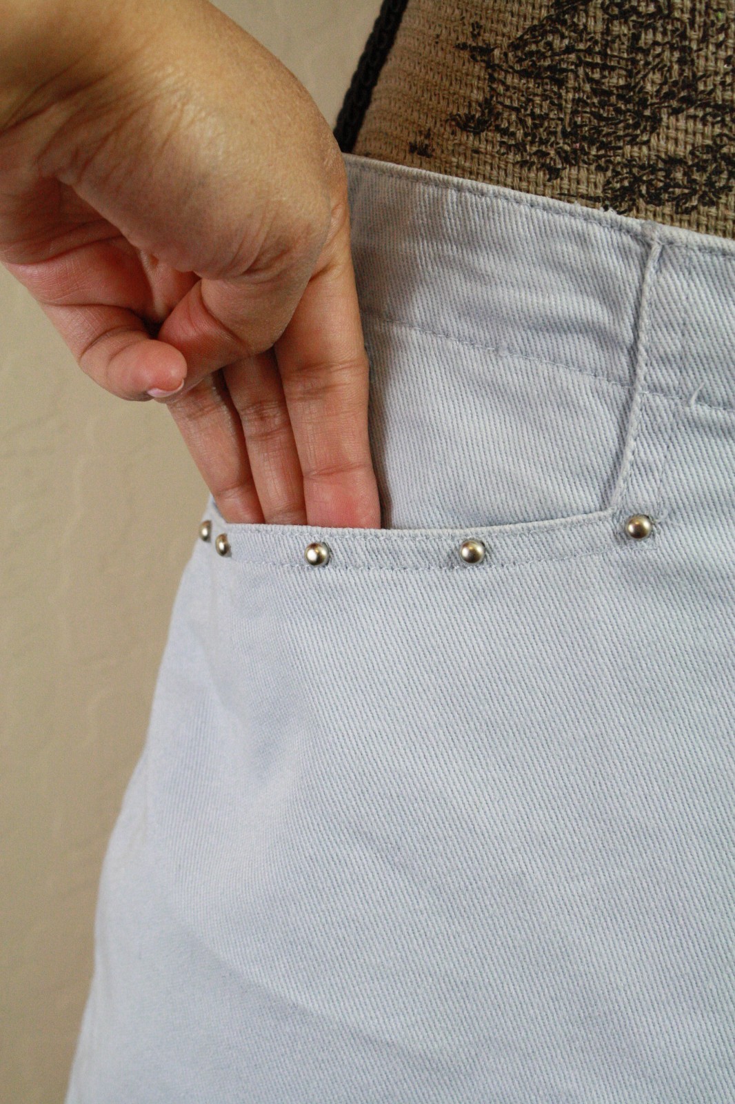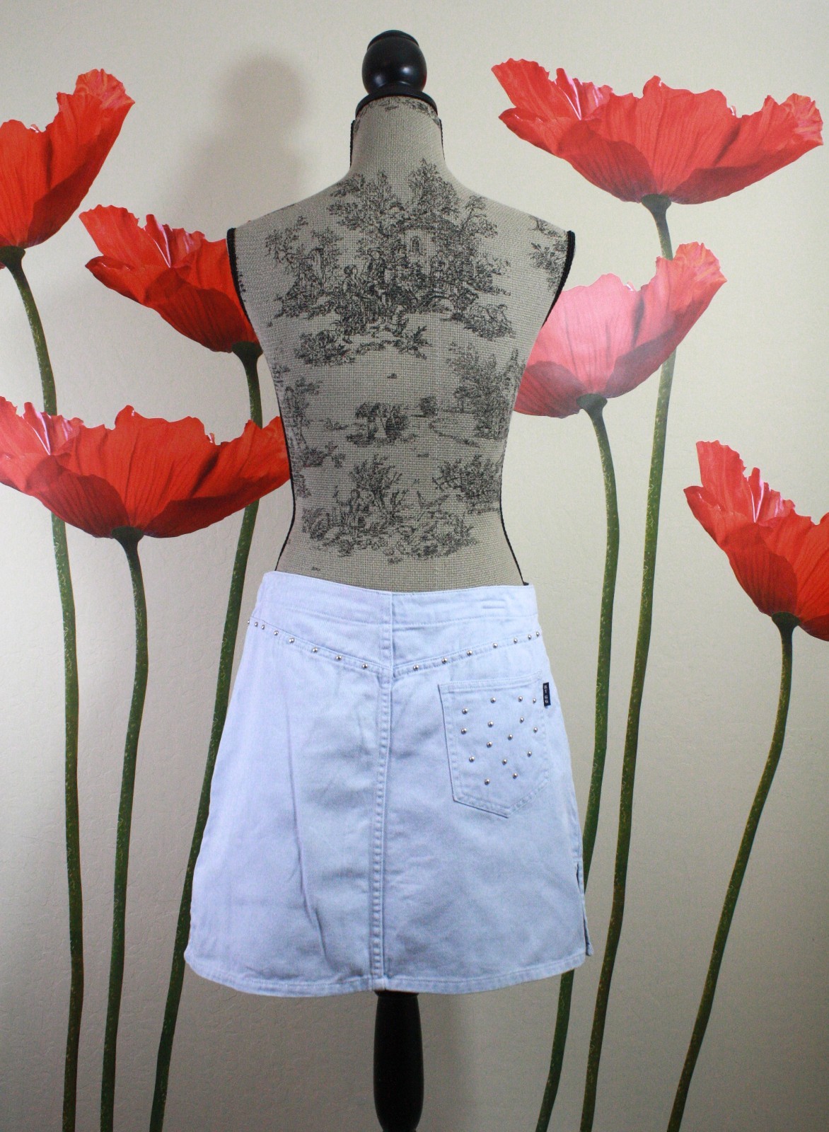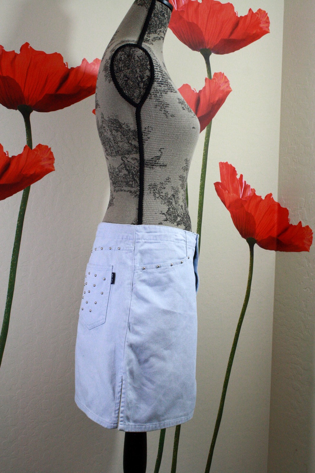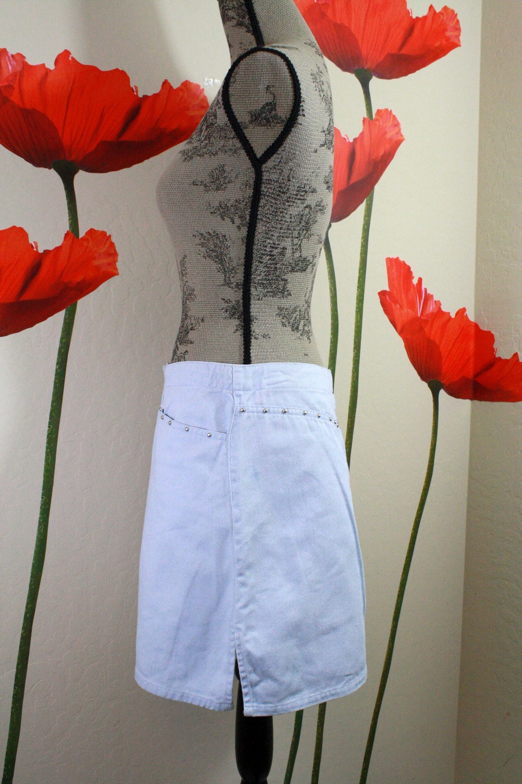 Route 66 Women's Vtg 80s Studded Pockets Denim Skirt, Size 9/10 Light Blue