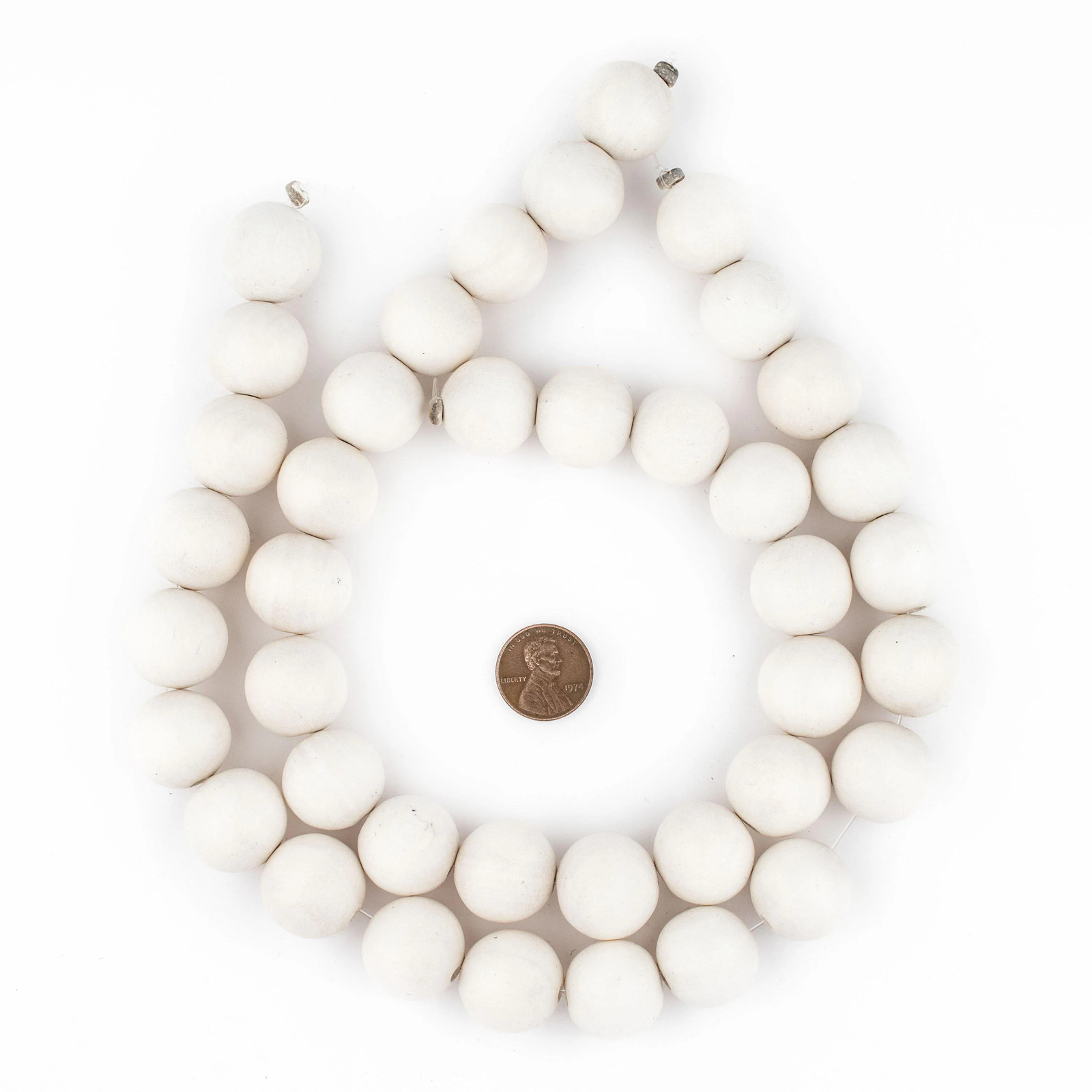 White Round Natural Wood Beads 20mm Large Hole 16 Inch Strand