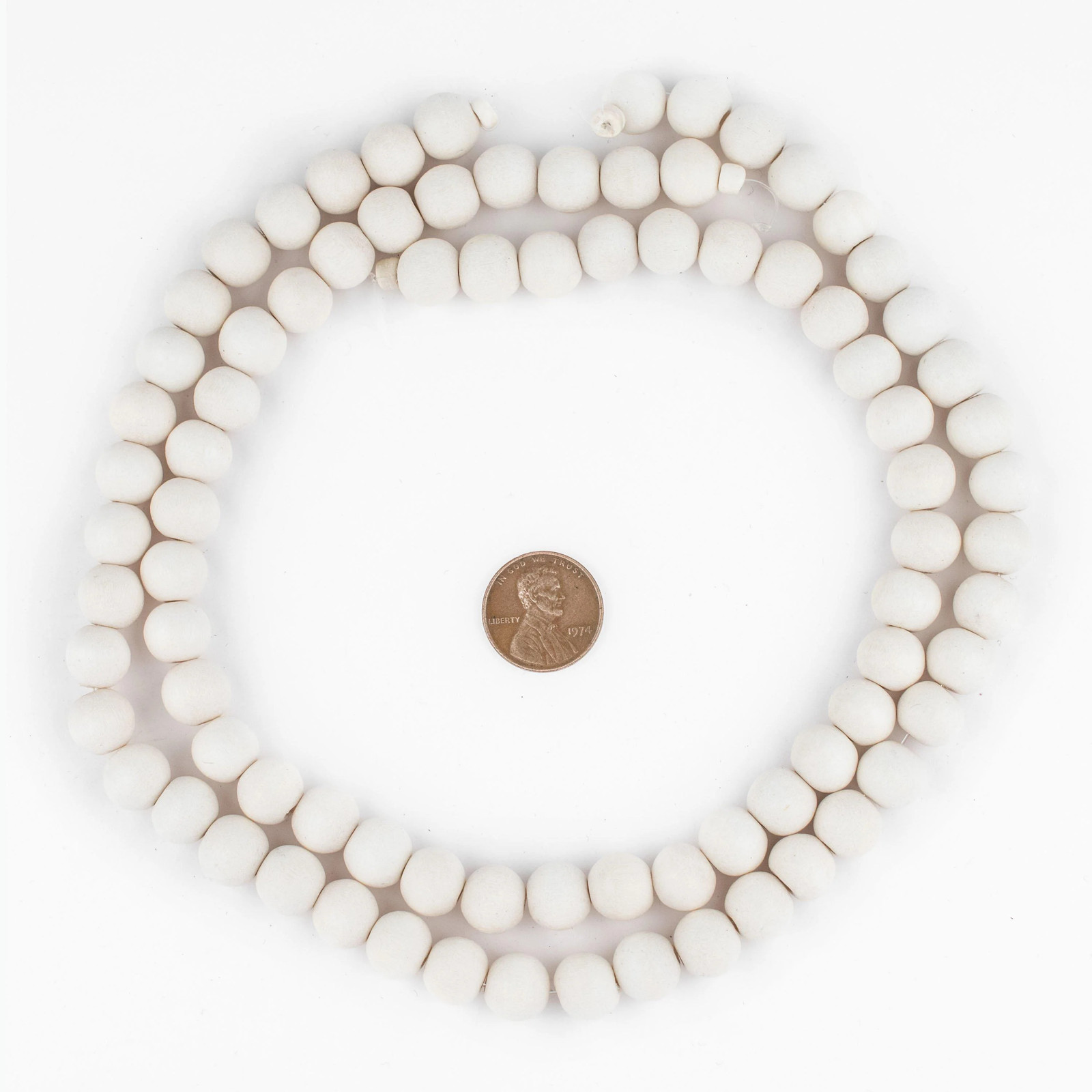 White Round Natural Wood Beads 10mm Large Hole 16 Inch Strand