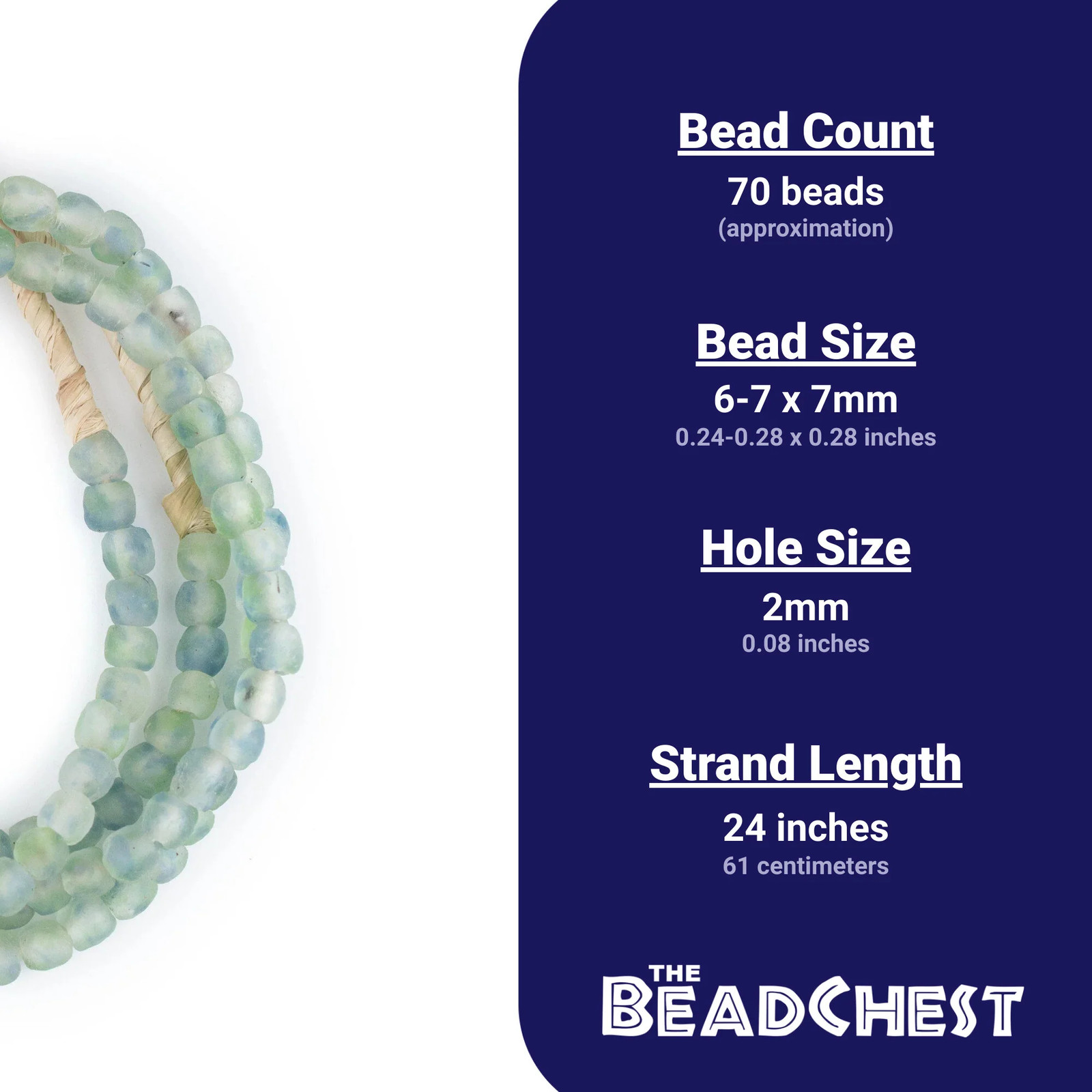 Blue-Green Swirl Recycled Glass Beads 7mm Ghana African Sea Glass Multicolor