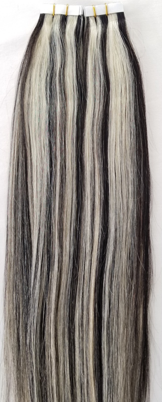 как выглядит 18",20" 100grs,40pcs, 100 HIGHLIGHTED Human Tape In Hair Extensions 1B/613 фото