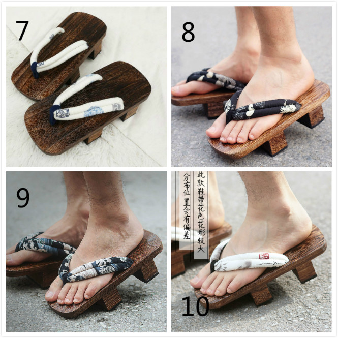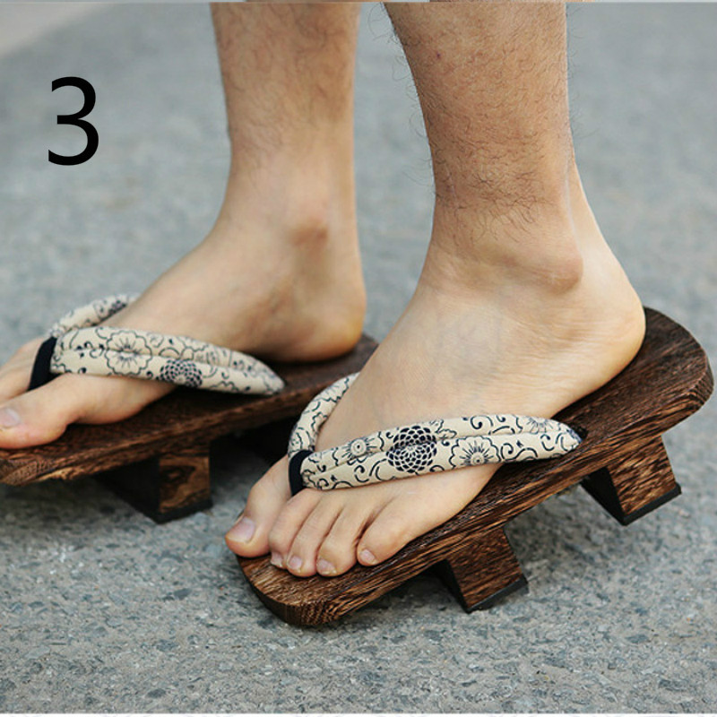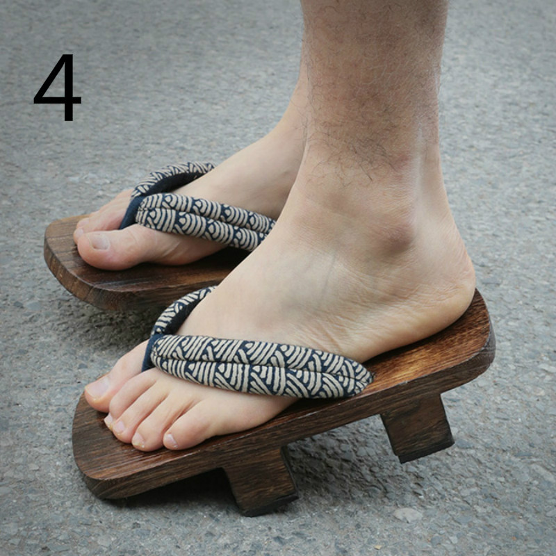 Men Japanese Tranditional Wood Flops Flip High Heel Bidentate Clogs GETA Retro
