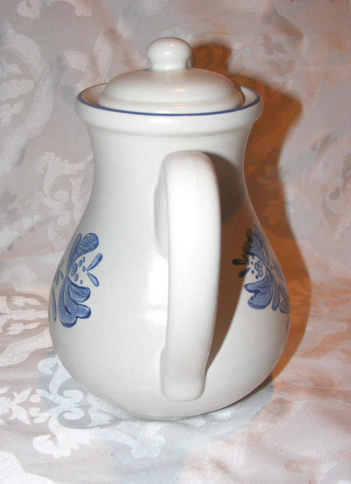PFALTZGRAFF COFFEE POT, Yorktowne Stoneware Blue floral Blue trim, 9Ht