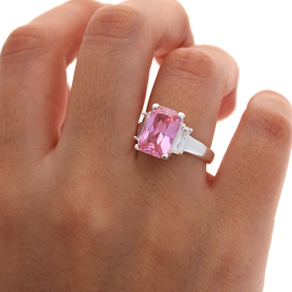 как выглядит Sterling Silver Pink Cubic Zirconia Ring, Genuine, .925 SS, 11mm Center, Pink CZ фото