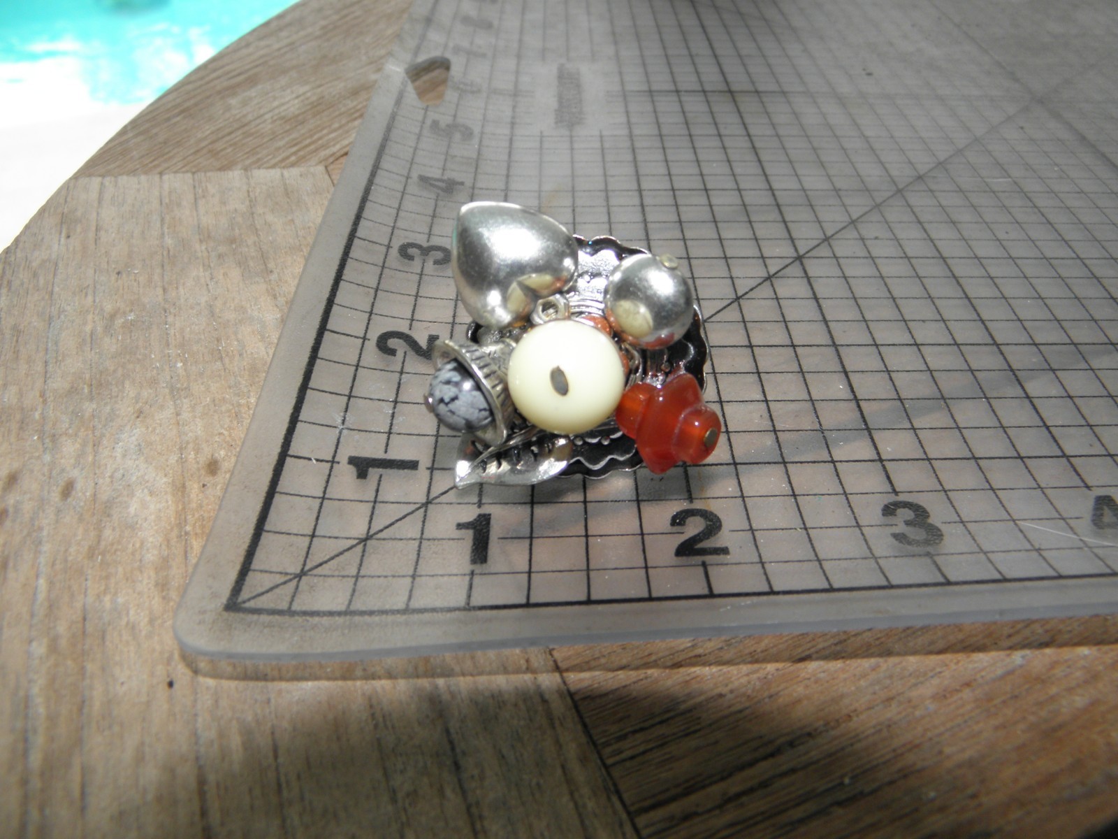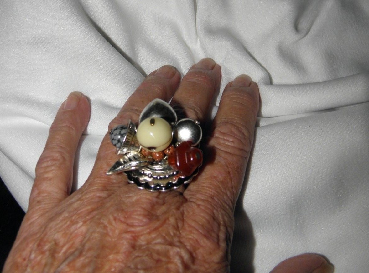 STAINLESS STEEL UNIQUE STUDIO ART HIGHLY EMBELLISHED LAYERED RING