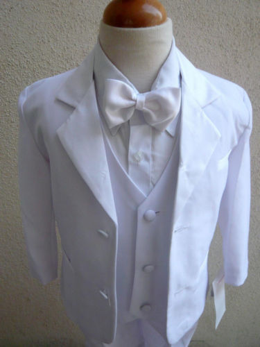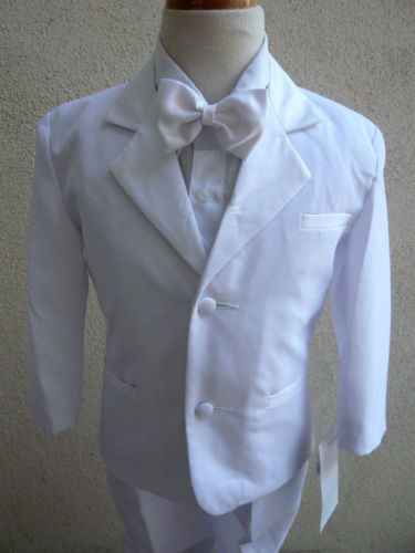Boys Tuxedo suit White Satin trim wedding Spring Easter Bow tie vest pants