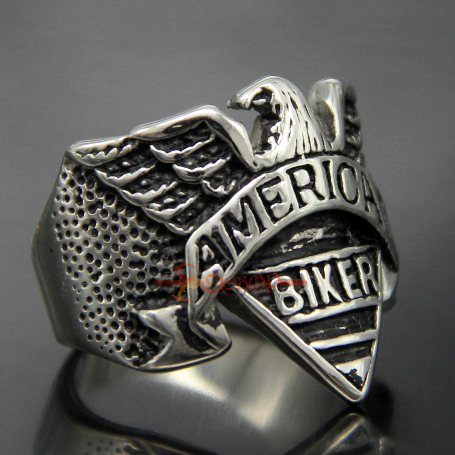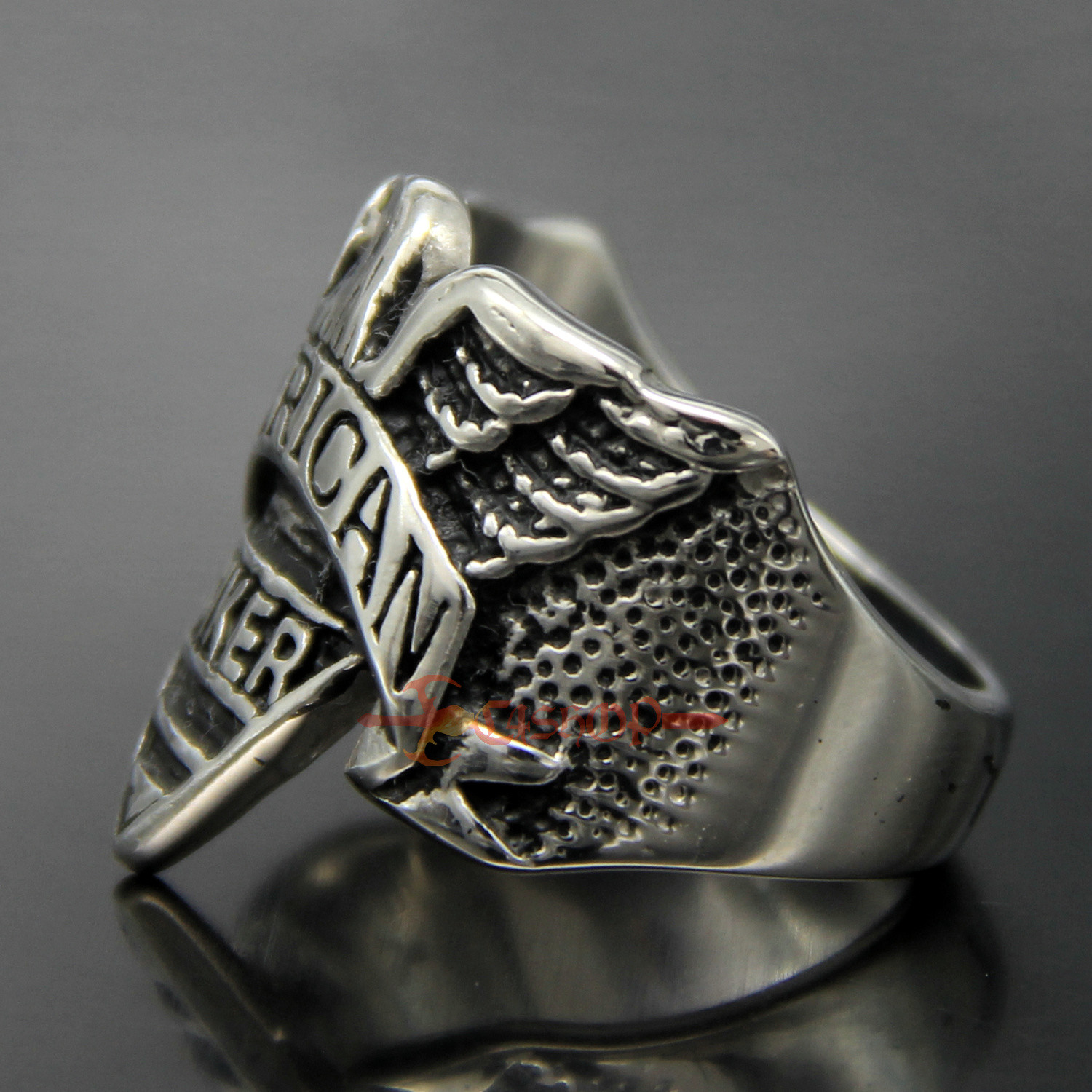 как выглядит Retro 316L Stainless Steel Eagle American Biker Engraving Cast Ring Men