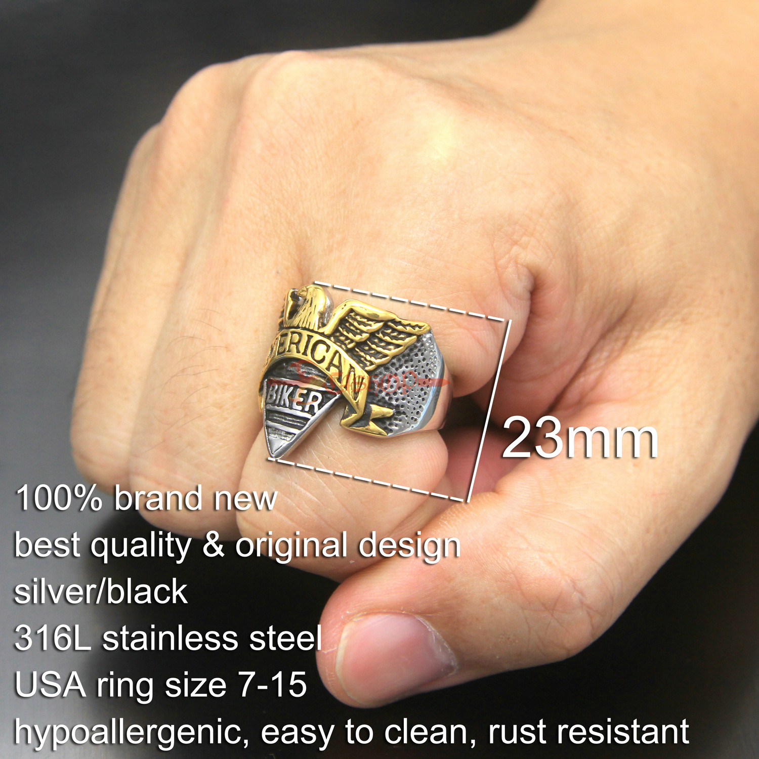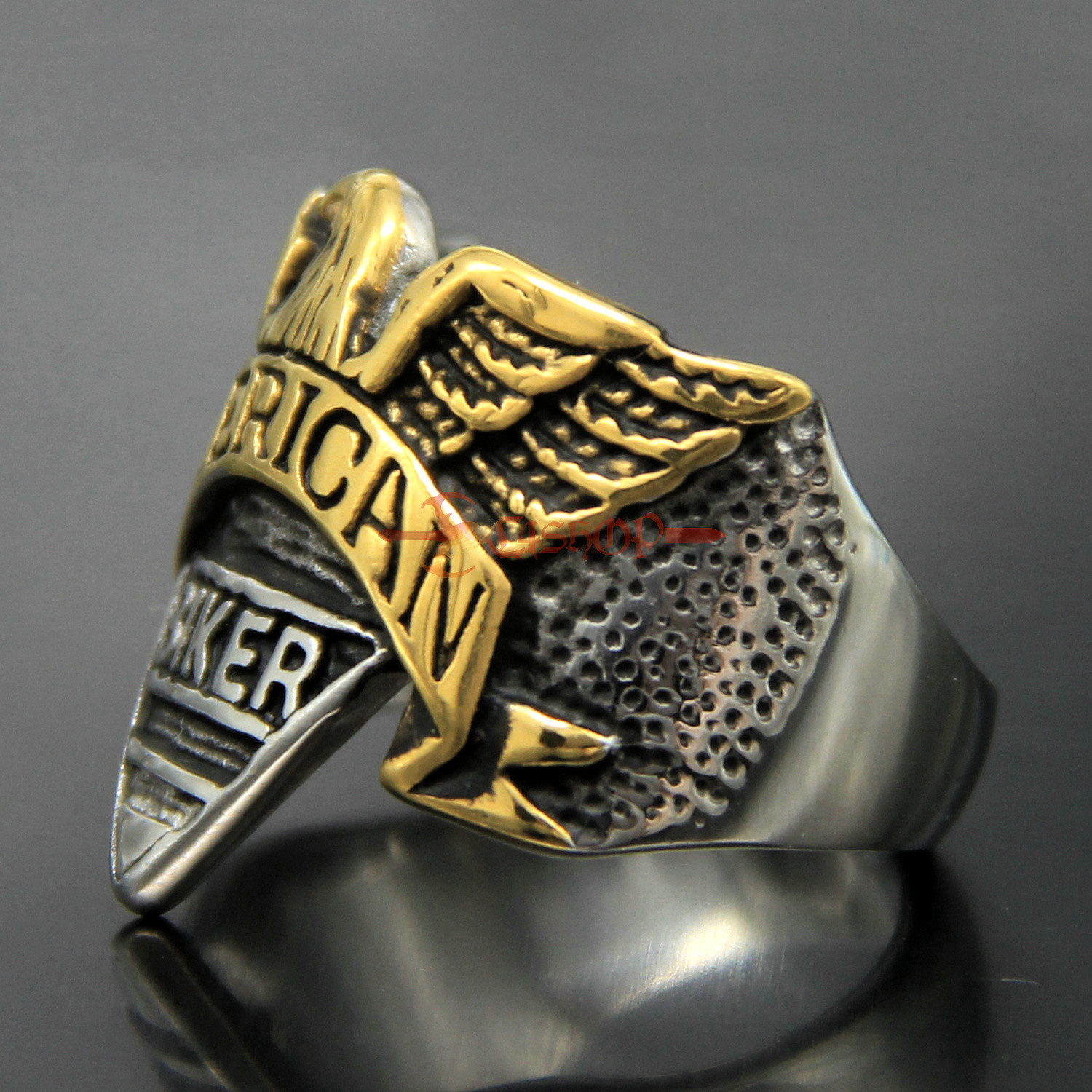 как выглядит Retro Mens Stainless Steel Eagle American Engraving Biker Ring Silver/Gold фото