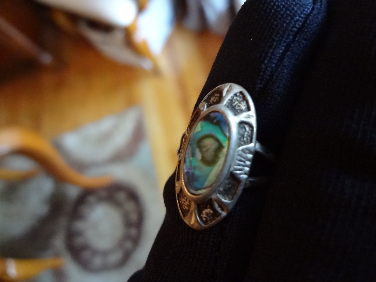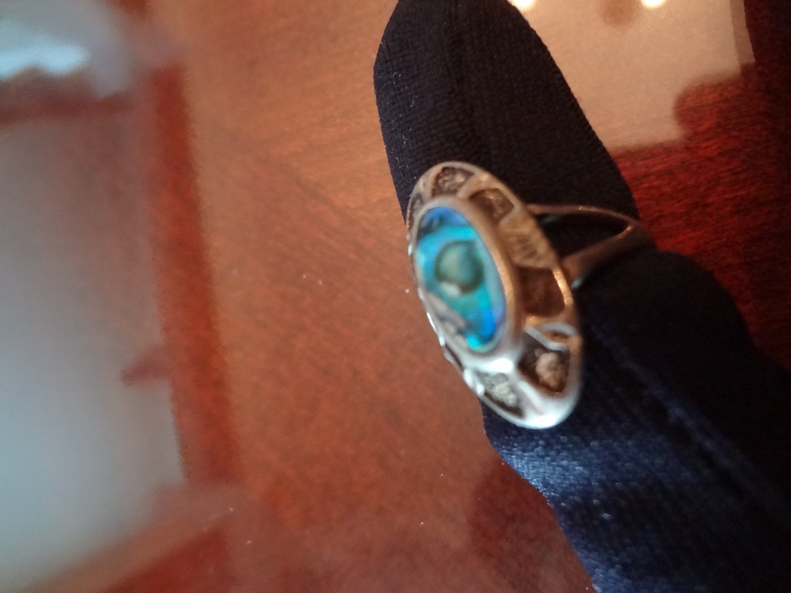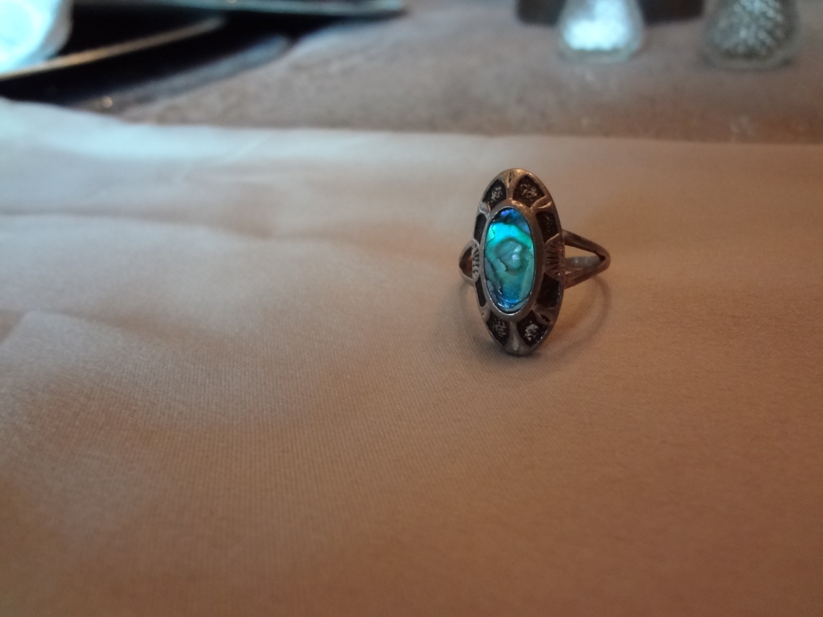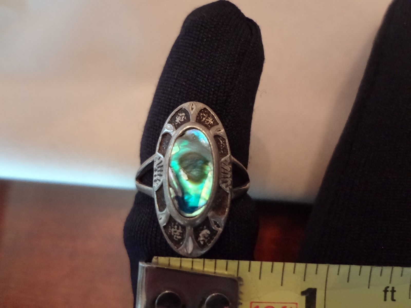 как выглядит 114-VINTAGE STERLING SILVER ABALONE RING--SIZE-8 фото