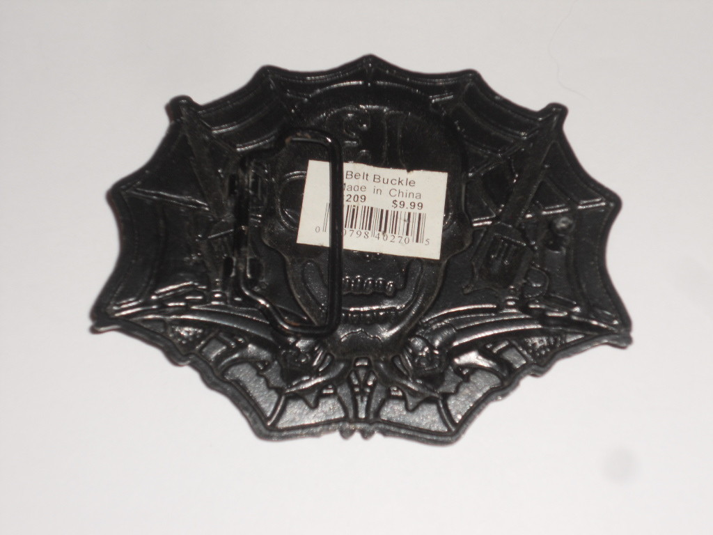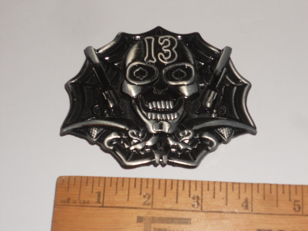 Metal Biker Belt Buckle With Skull And 13 and 2 Pistols 4 W X 3 1/4 T NWT