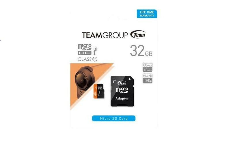 Team 32GB microSDHC UHS-I/U1 Class 10 Memory Card with Adapter, Speed Up to 80MB