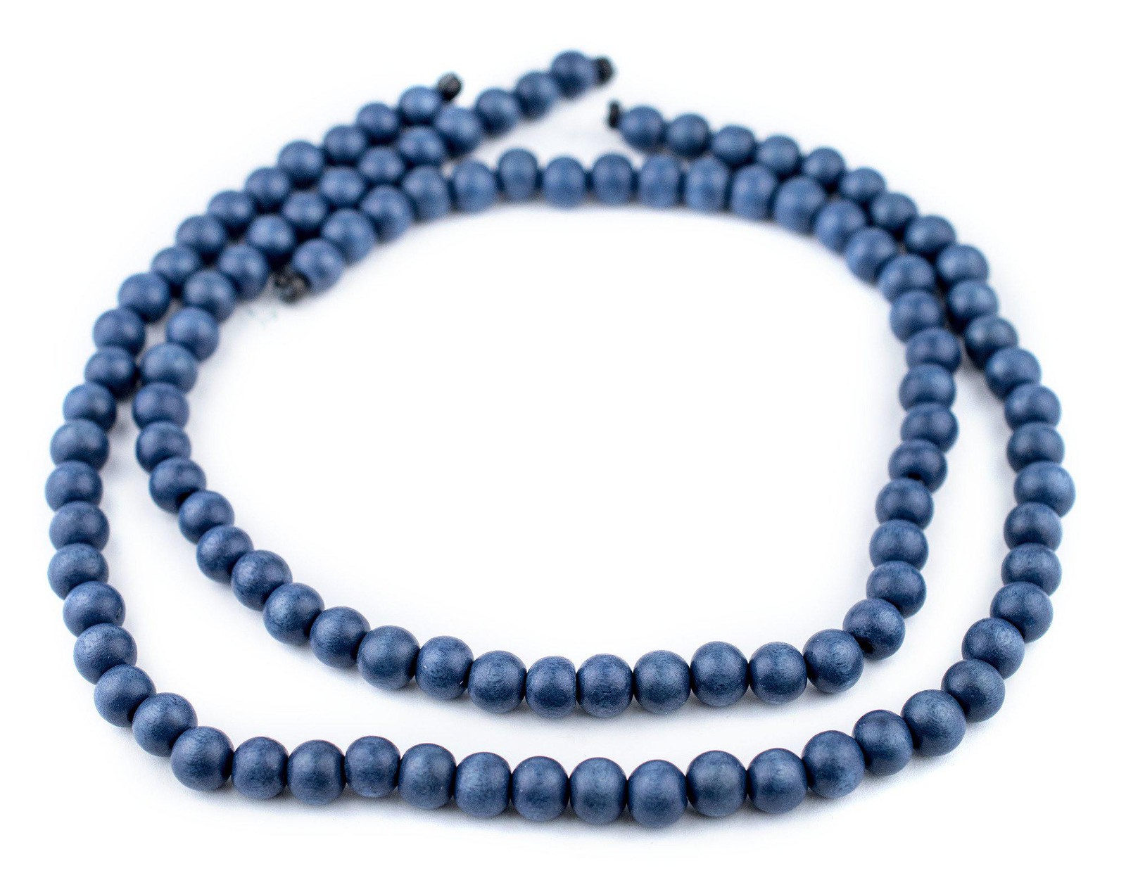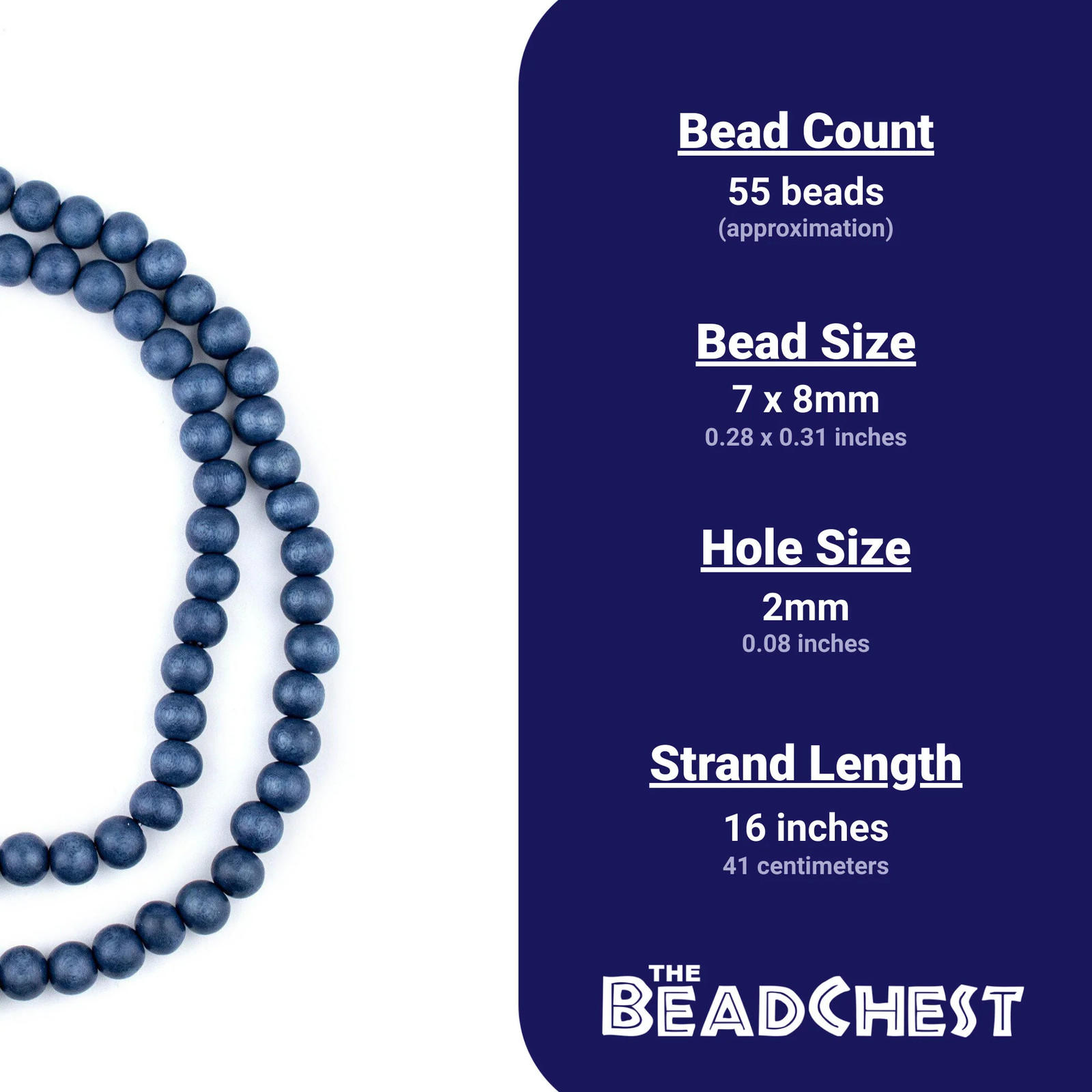 Cobalt Blue Round Natural Wood Beads 8mm Large Hole 16 Inch Strand