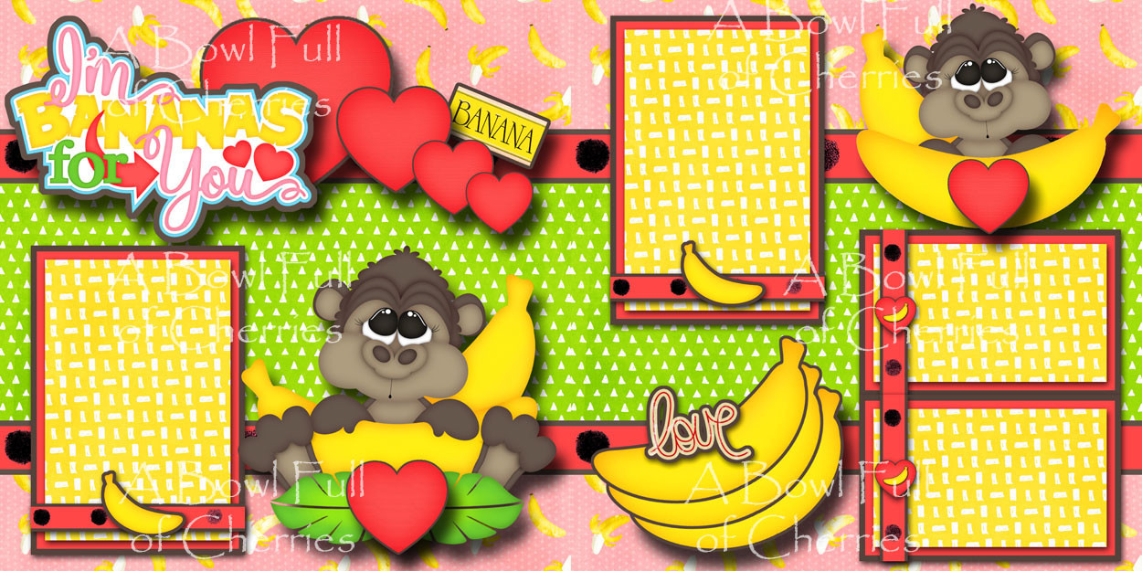 Bananas for you 2 premade scrapbook pages paper printed layout family by cherry