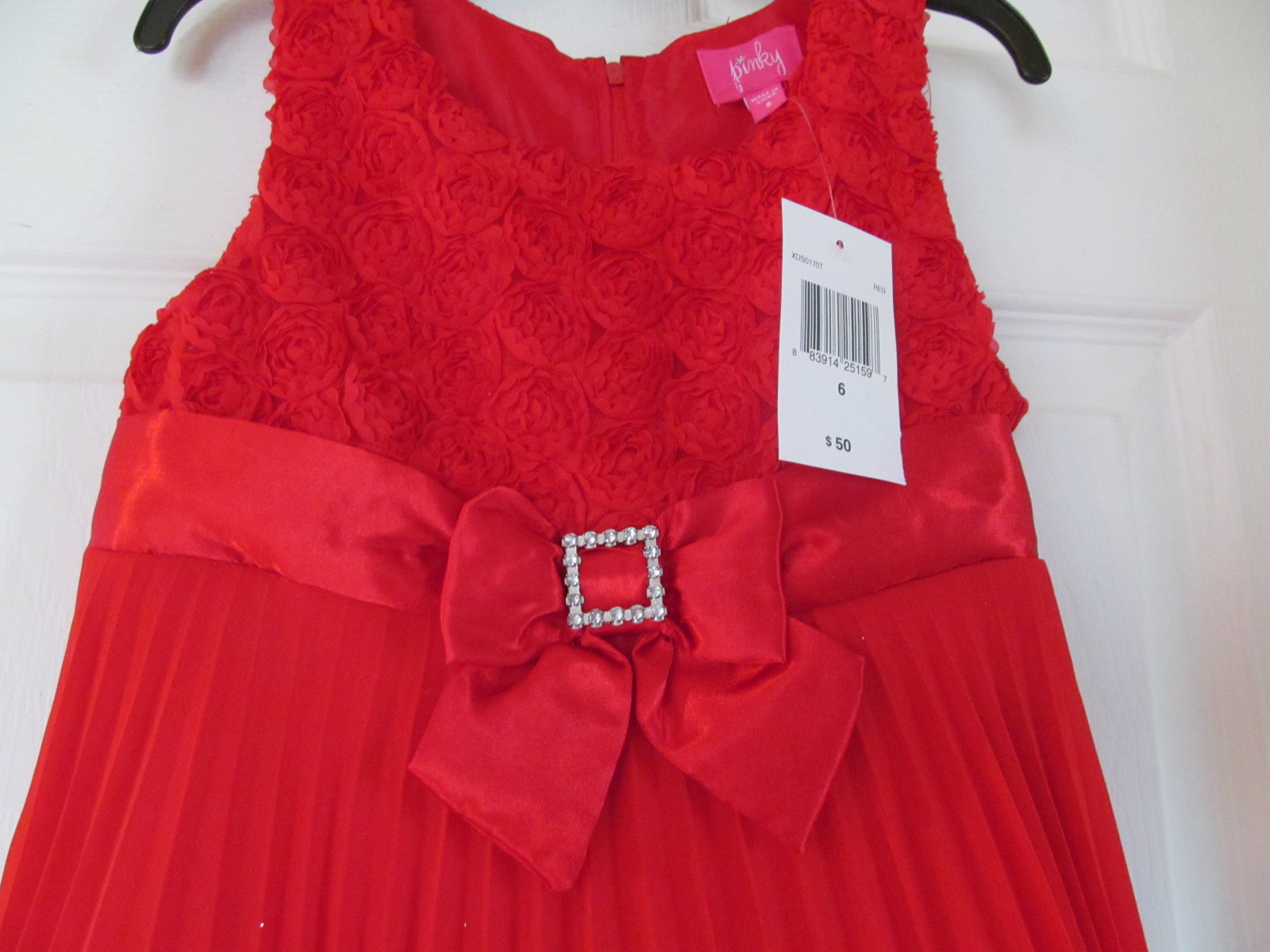 NWT Girls RED ROSETTE PLEATED SATIN BOW WEDDING, EASTER,Quincea era DRESS,Size 6