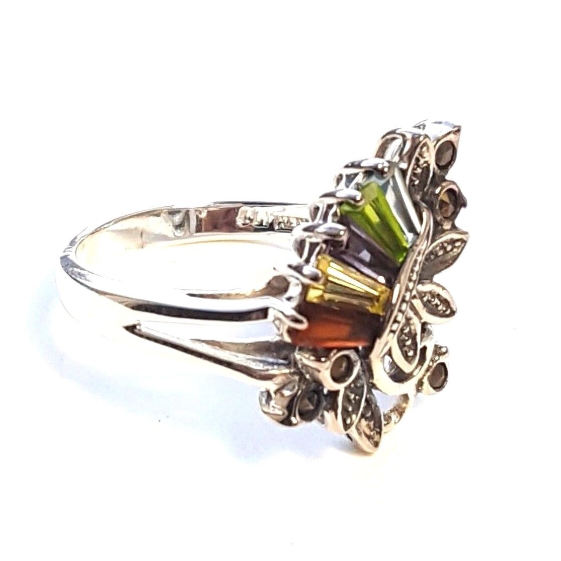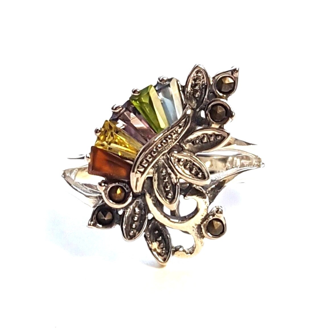 как выглядит SIZE 6,7,8 MULTI STONES RING Amethyst Topaz Marcasite .925 STERLING SILVER фото