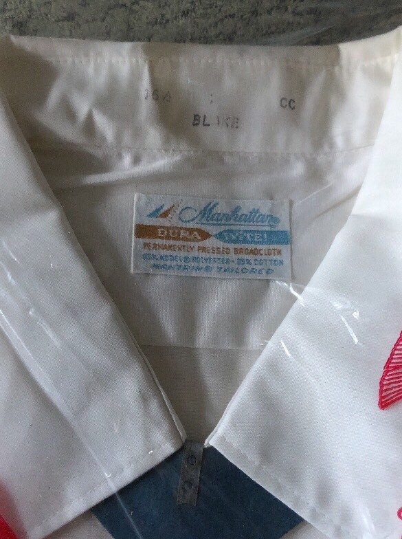 как выглядит NOS L 16 White Dura Wite Vtg 60s Manhatten Delcot Mantrim L/S Dress Shirt фото
