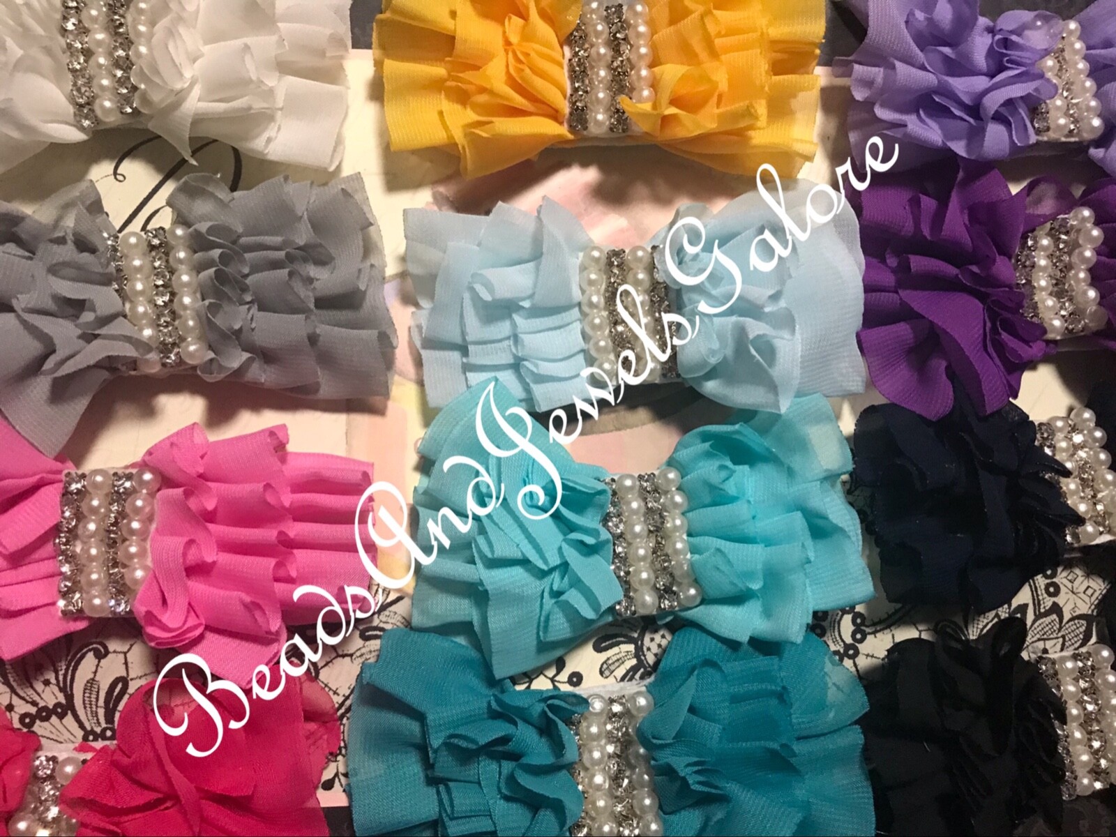 Rhinestone hair bows Chiffon bows crystal bows rhinestone bows bling pearl bows