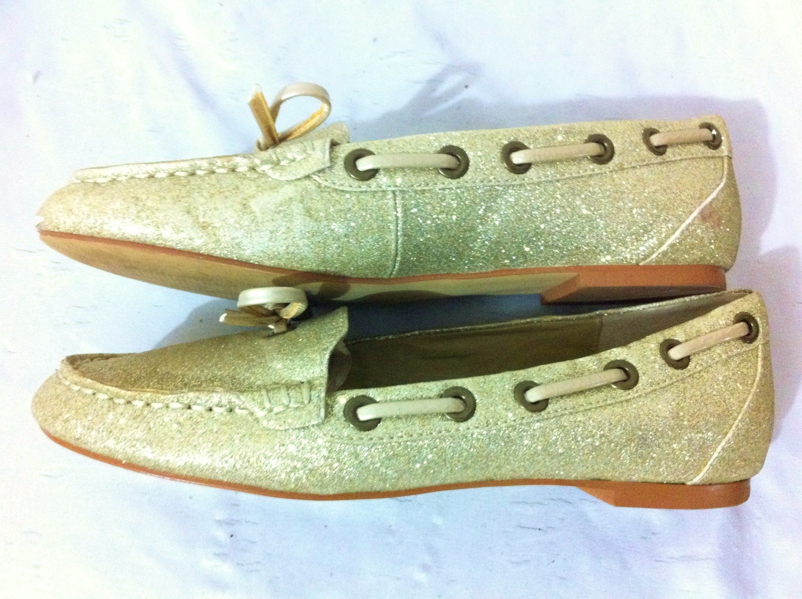 как выглядит Marco Santi Megan Loafer Flats Glittery Gold Fabric Size 7.5M фото