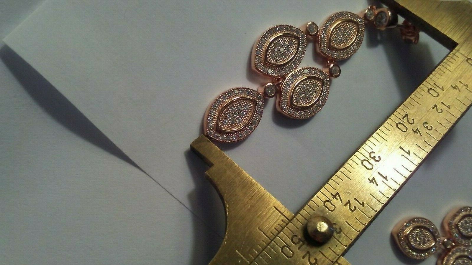 как выглядит 925 STERLING SILVER ROSE GOLD plated Fancy DANGLE earrings Micro paved CZ stones фото