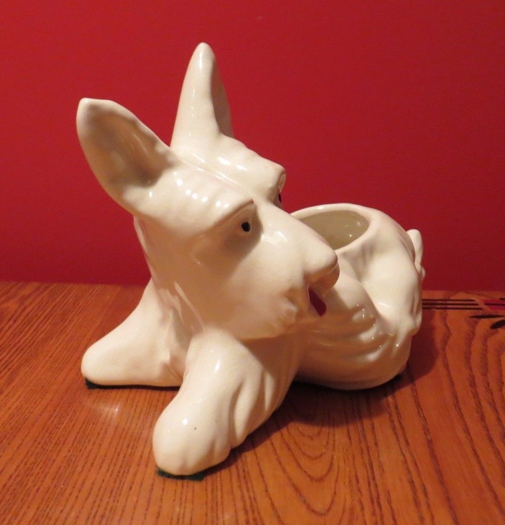 как выглядит SCOTTISH TERRIER "SCOTTY" "SCOTTIE" WHITE PLANTER - CUTE VINTAGE POTTTERY фото