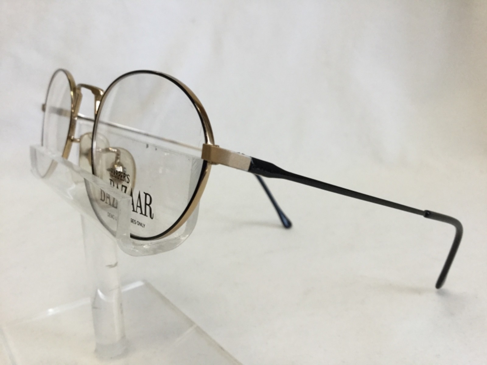 как выглядит Vintage Harper s Bazaar 5 Eyeglasses Oval Satin Gold Black Metal Hippy фото