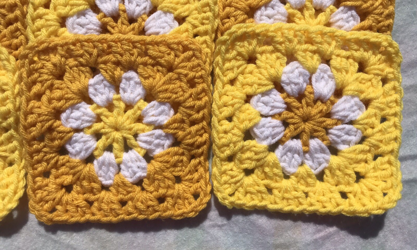 Lot 20 5 YELLOW SUNFLOWER Daisy FLOWER Crochet GRANNY SQUARES Afghan Blocks