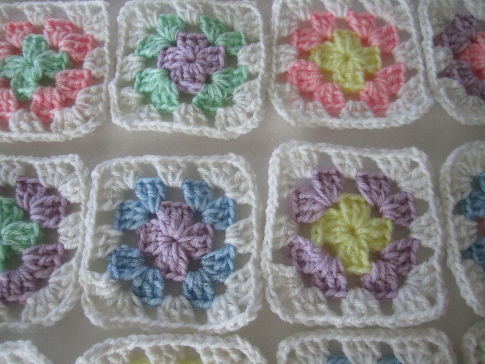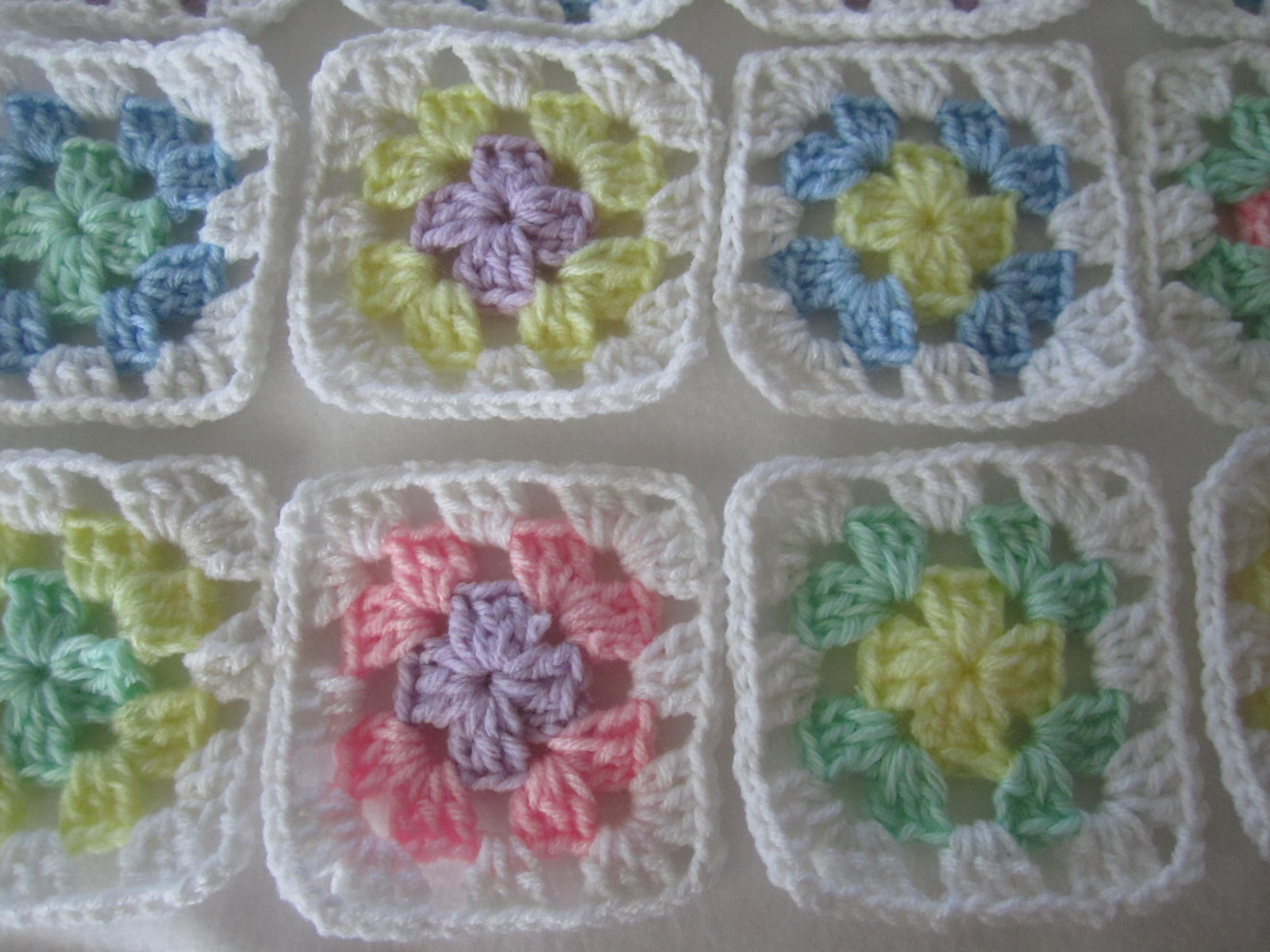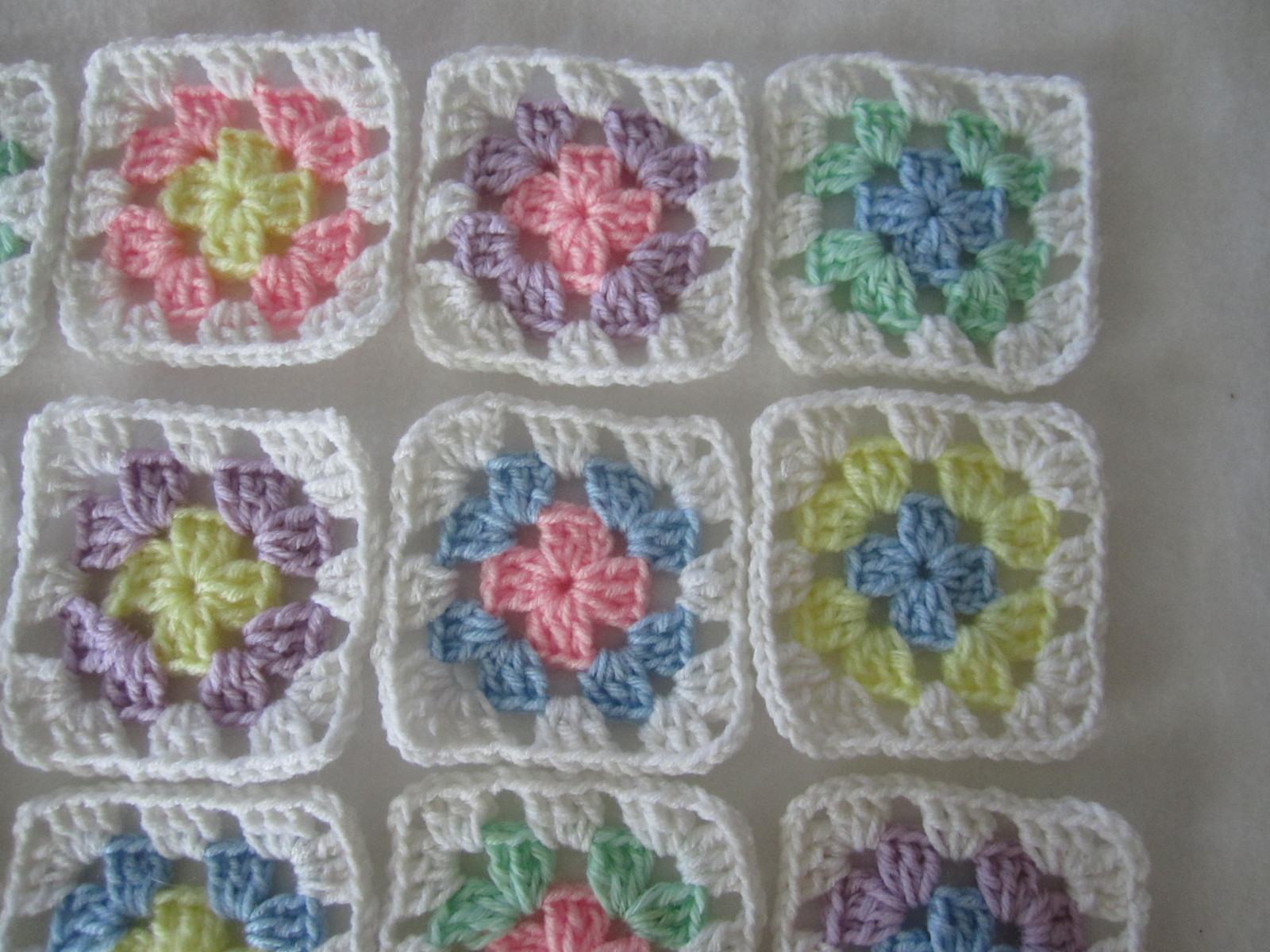 как выглядит 20-3.5" GRANNY SQUARES BLOCKS 4 AFGHAN, AFGHANS ASSORTED PASTEL COLORS фото