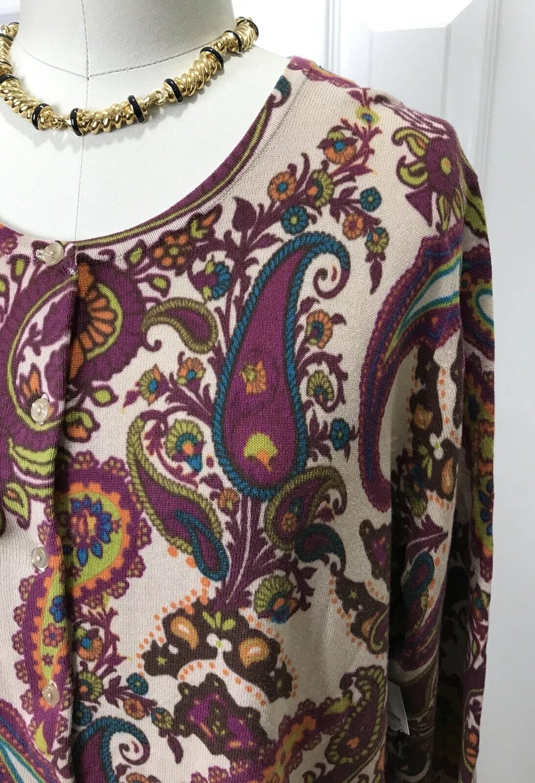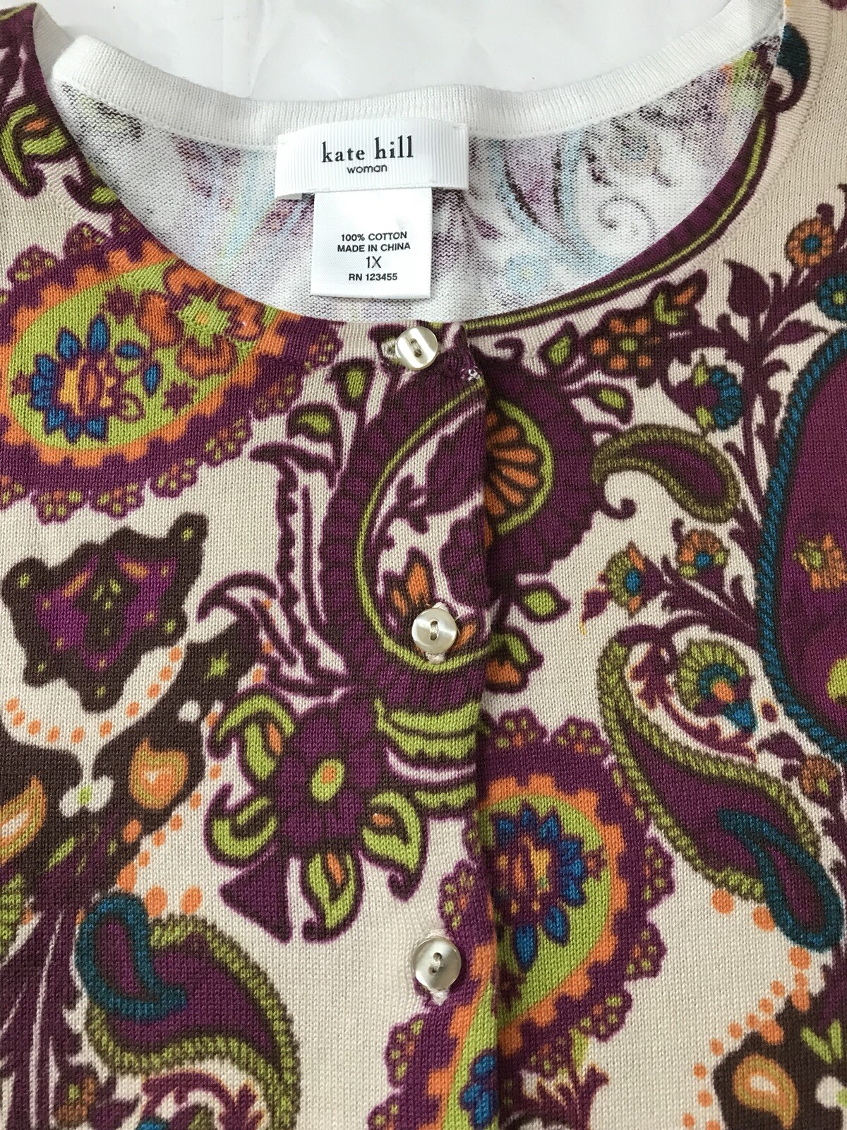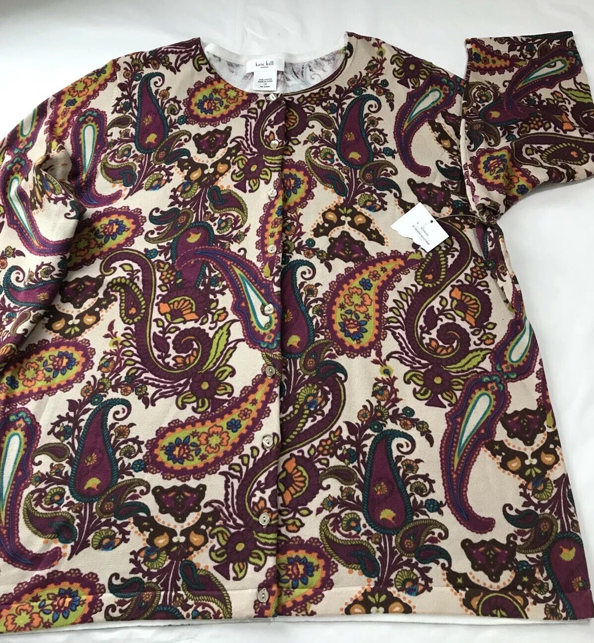 NWT KATE HILL WOMAN 100 COTTON BUTTON DOWN SWEATER CARDIGAN PAISLEY SIZE 1X