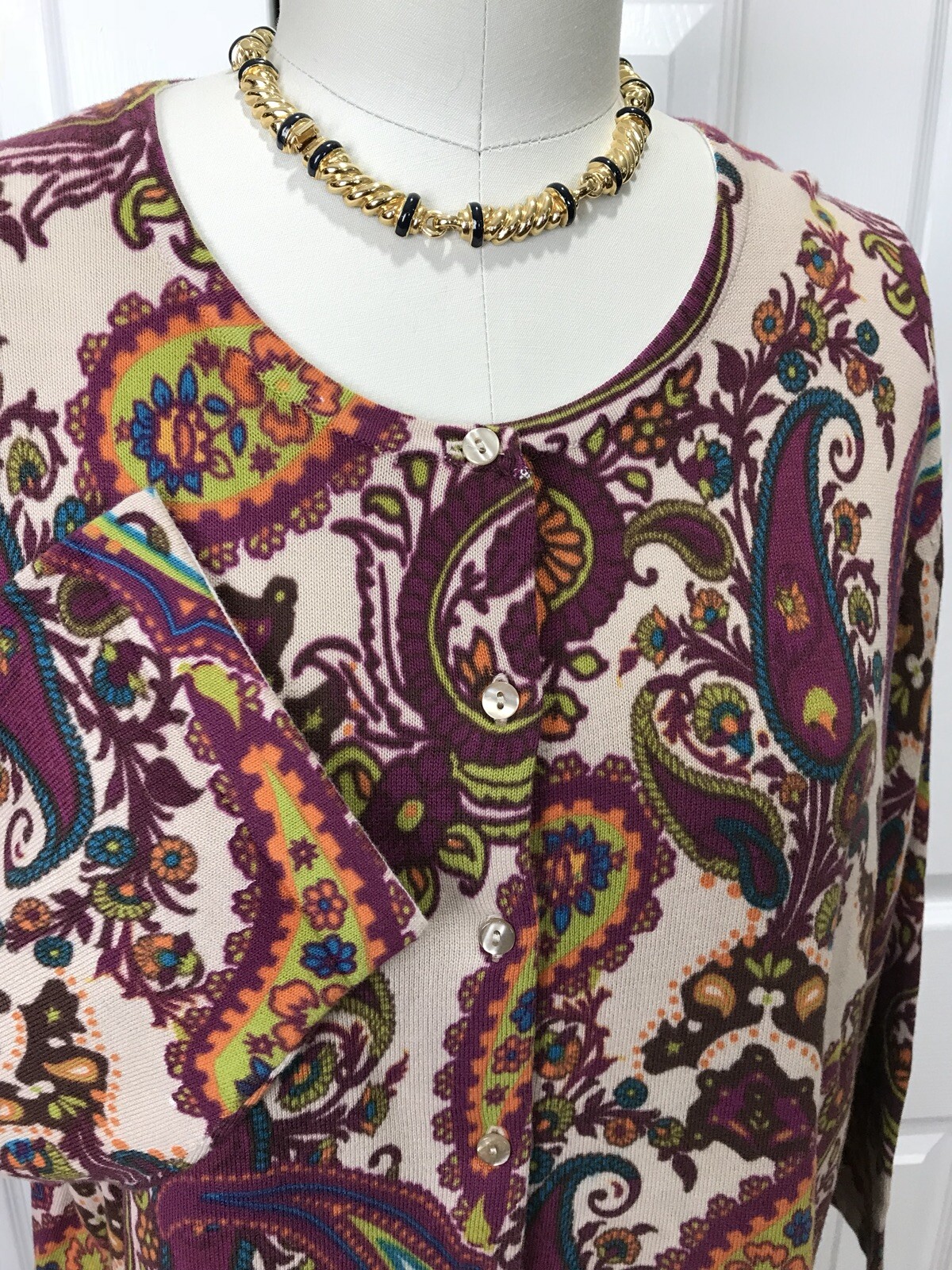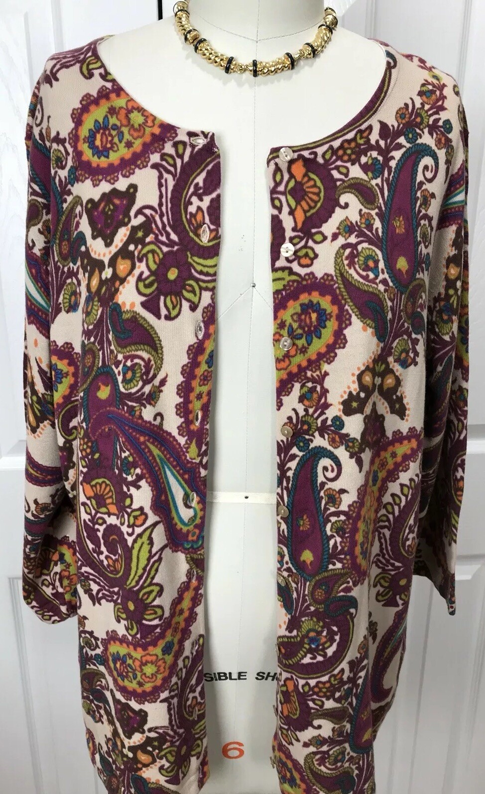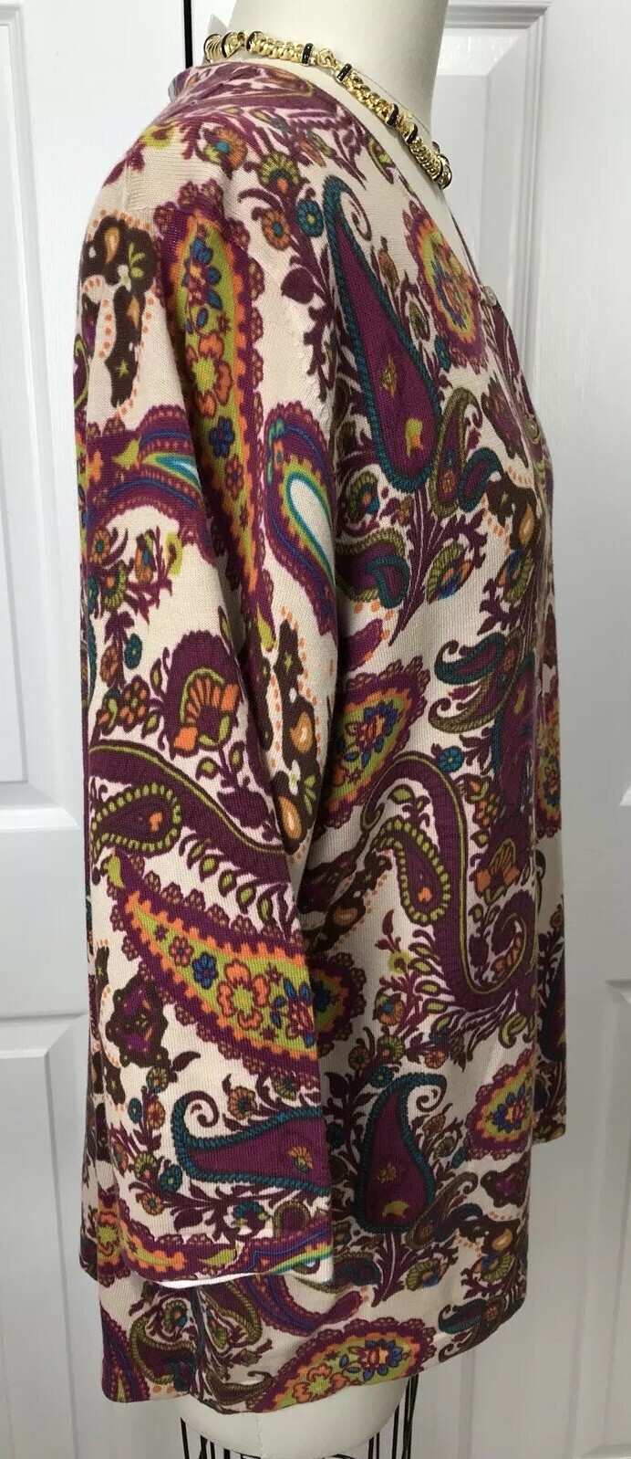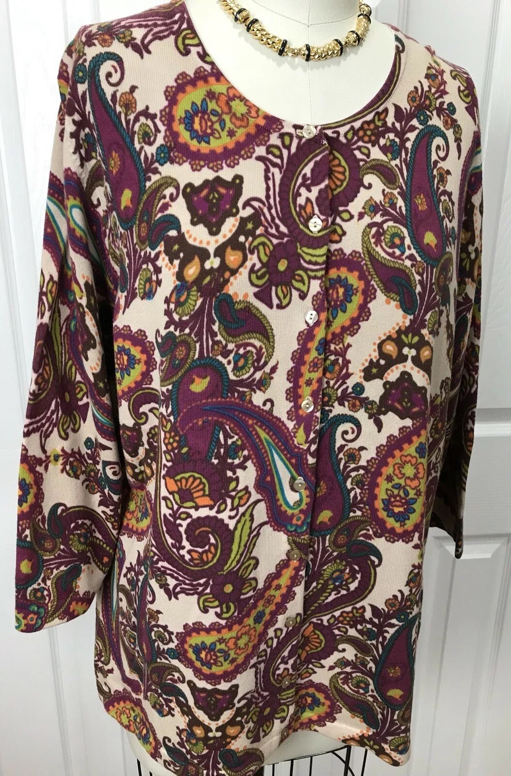 NWT KATE HILL WOMAN 100 COTTON BUTTON DOWN SWEATER CARDIGAN PAISLEY SIZE 1X