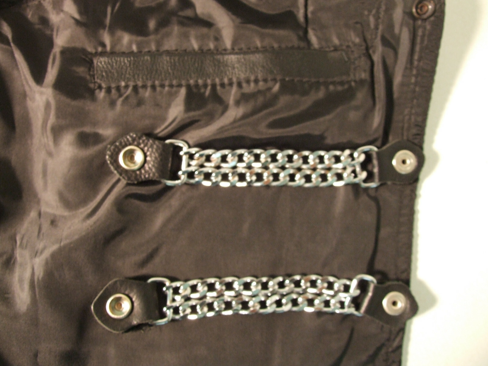 как выглядит Mens Size 46 Black Genuine Leather Motorcycle Bikers Vest With Pins Patches фото