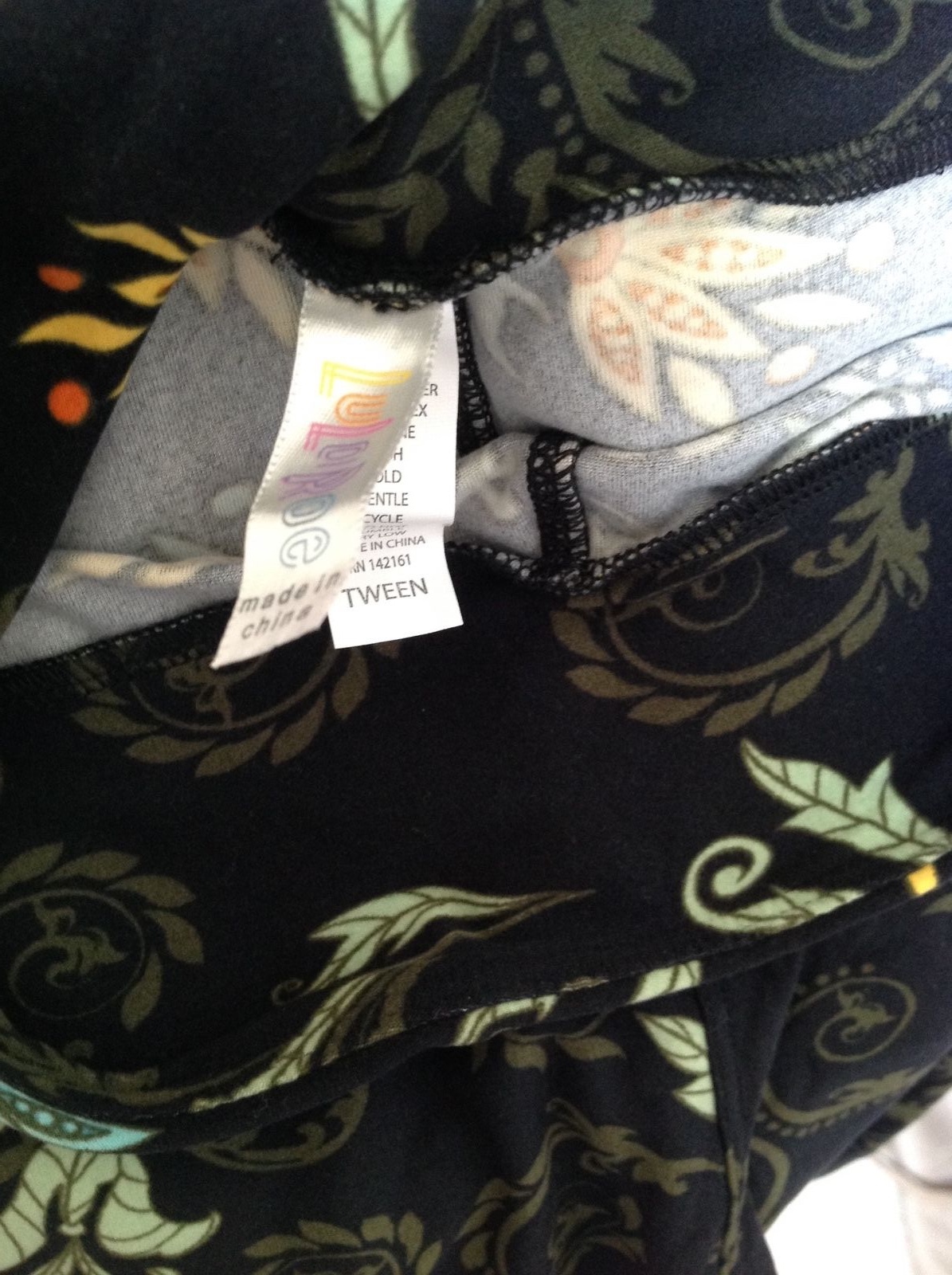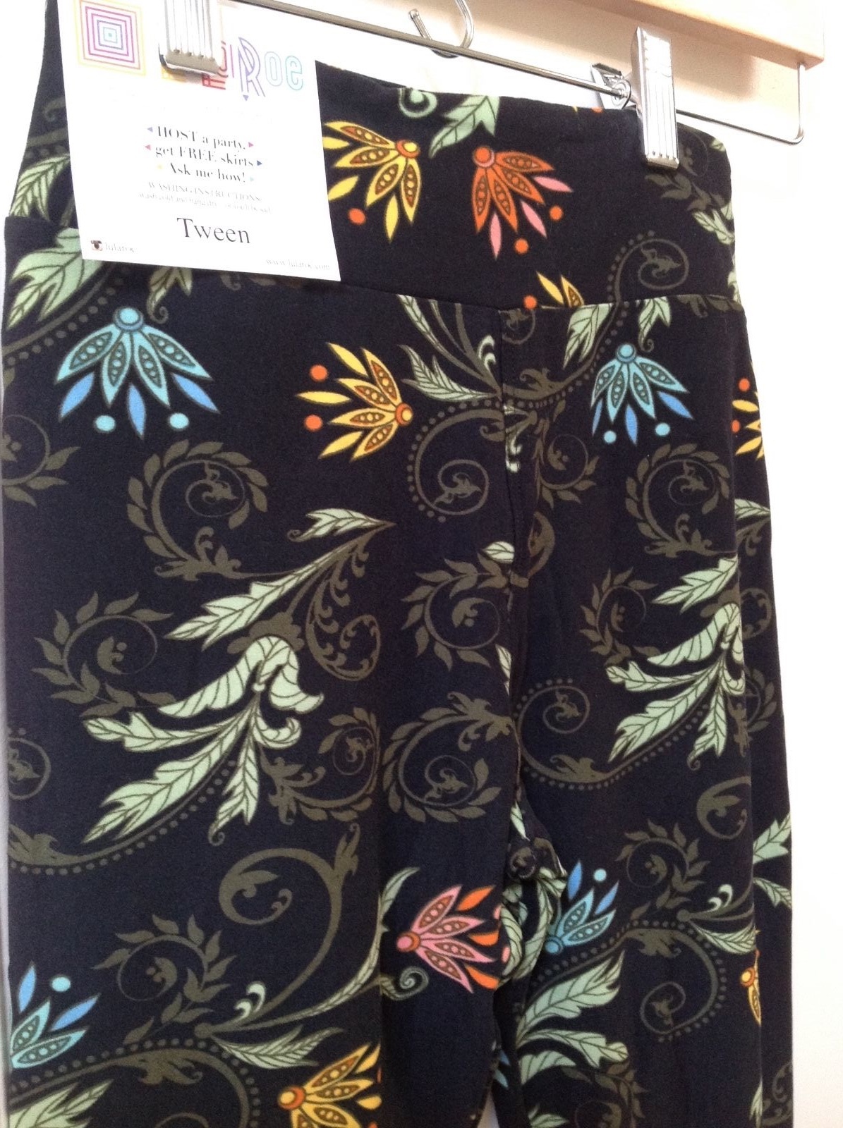 LULAROE TWEEN SIZE FLORAL PAISLEY FLOWERS VINES Black Background Leggings
