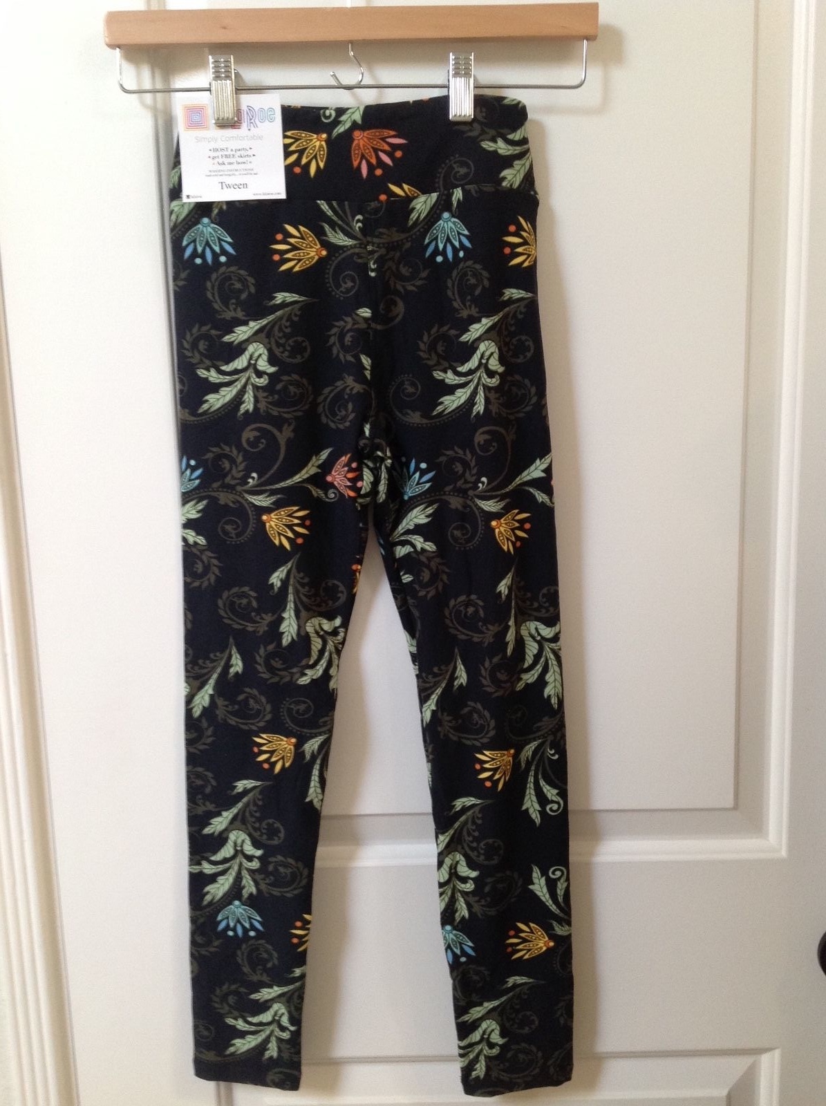 как выглядит LULAROE TWEEN SIZE FLORAL PAISLEY FLOWERS VINES Black Background Leggings фото