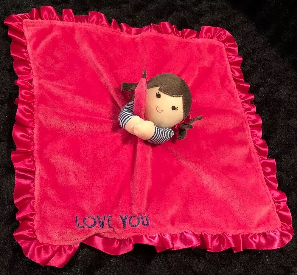 CARTERS Security Blanket/Lovey Brunette Girl Hot Pink I Love You