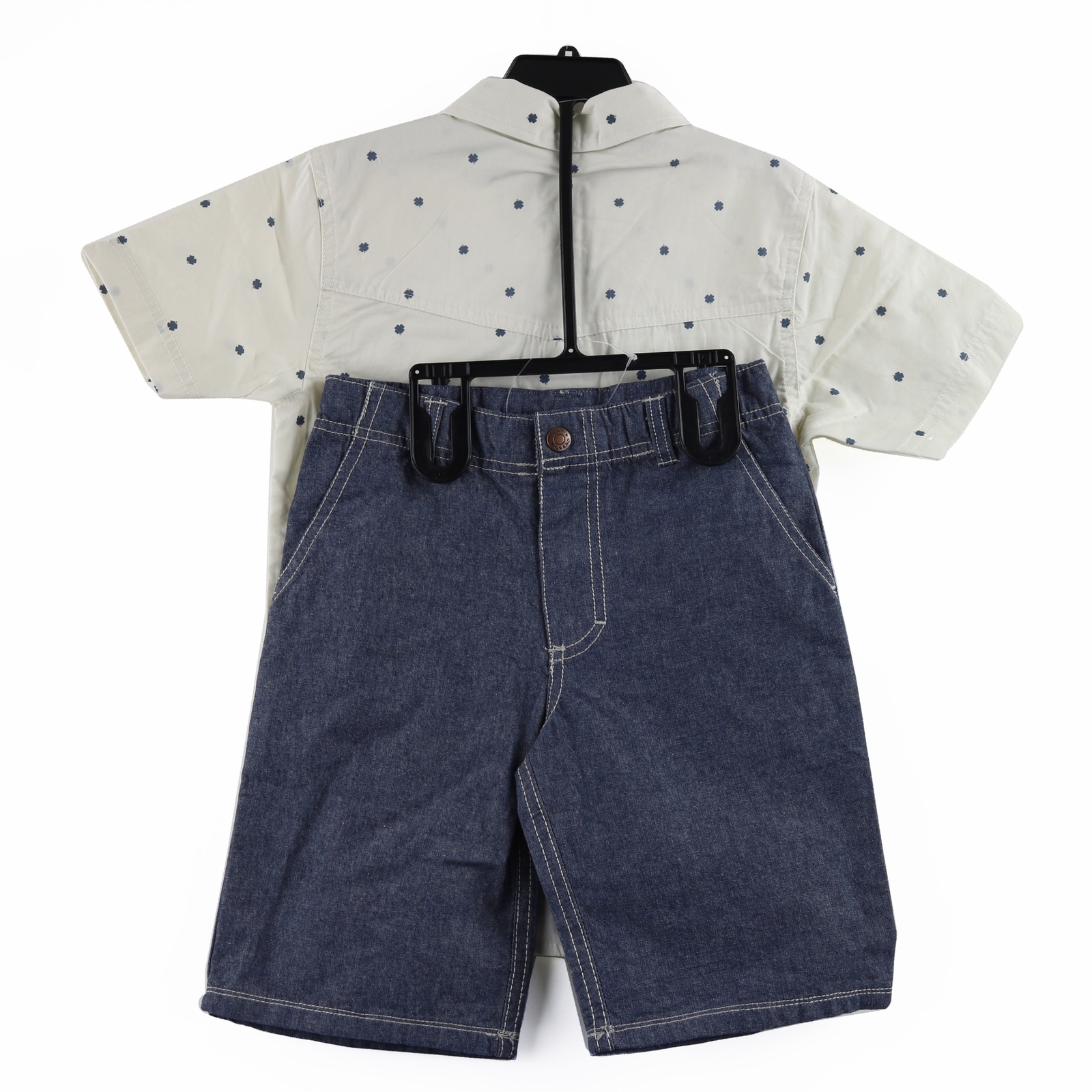 Lucky Brand Boy's 2-Piece Woven Shirt and Short Set, size 7, Cream/Blue