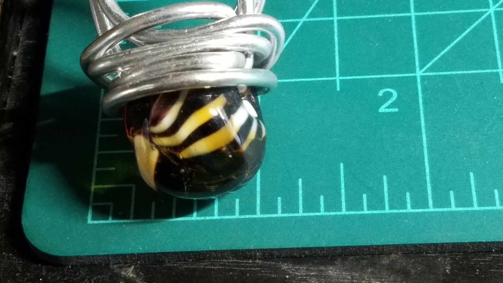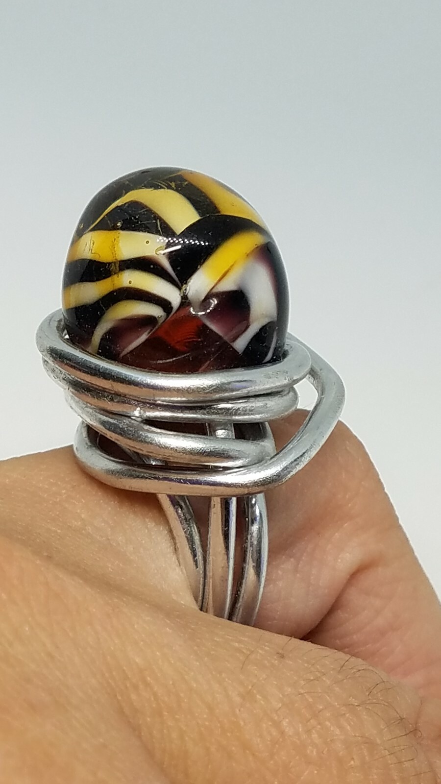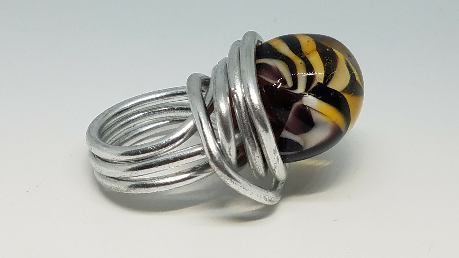 Artisan Art Glass Bead Silver Tone Wire Chunky Ring Size 8