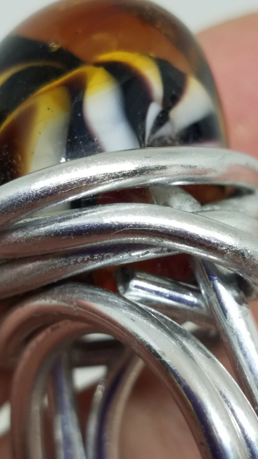 как выглядит Artisan Art Glass Bead Silver Tone Wire Chunky Ring Size 8 фото