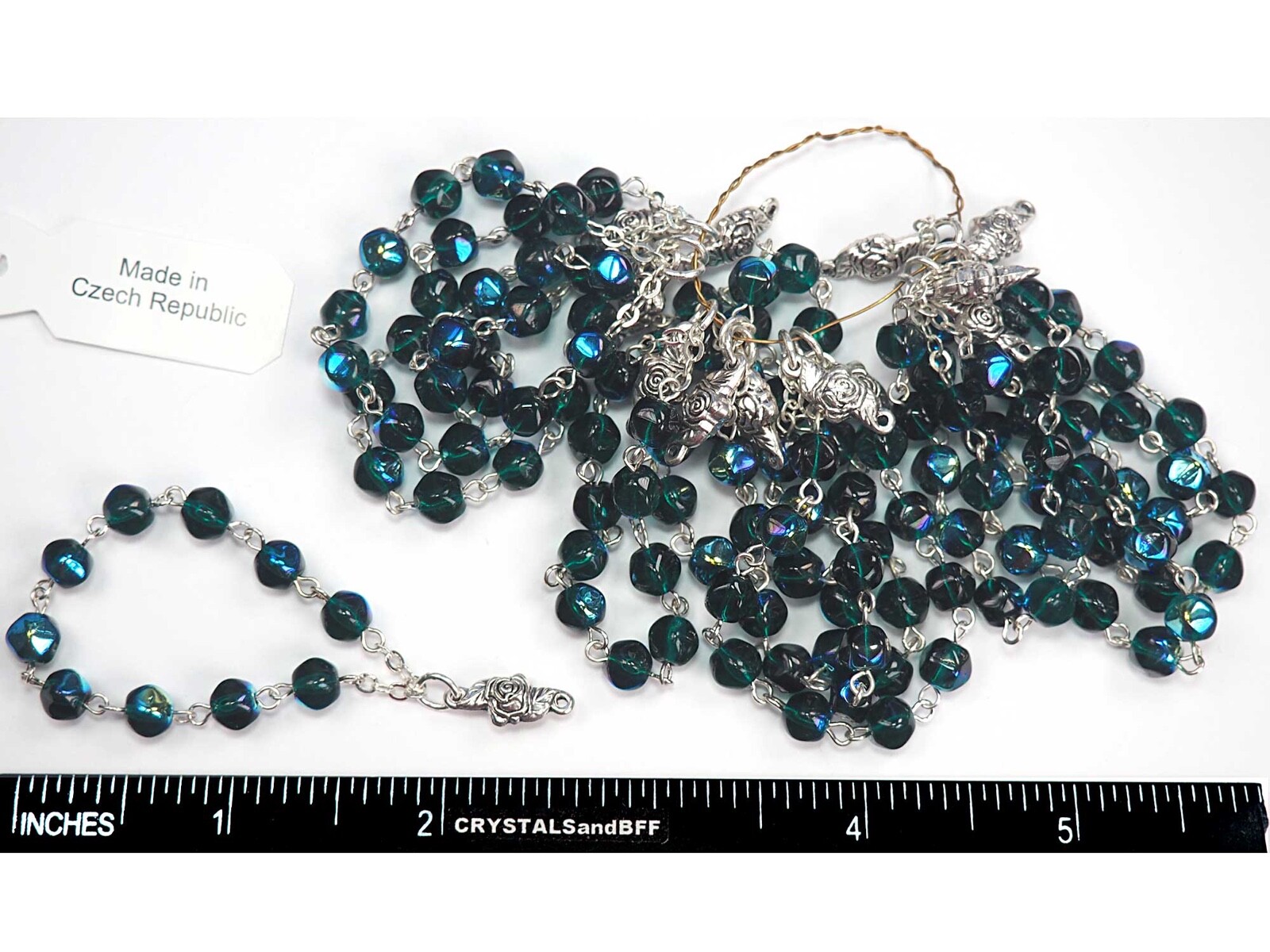 как выглядит Rosary Chain, Finger Auto Rosary chain with Centerpiece, 6mm Emerald AB, P576 фото