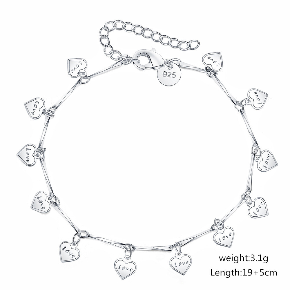 Womens 925 Sterling Silver Love Heart Foot Link Chain Vogue Ankle Bracelet A20