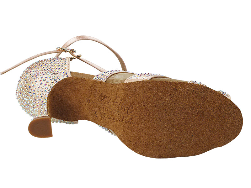 Women's Dance Shoes Salsa Latin Bachata Flesh Satin Rhinestone Very fine S1005CC