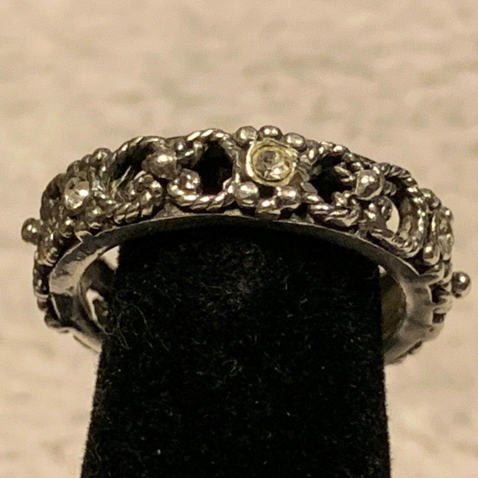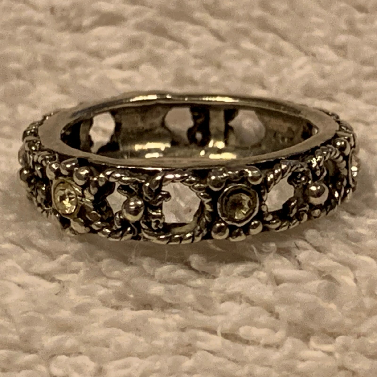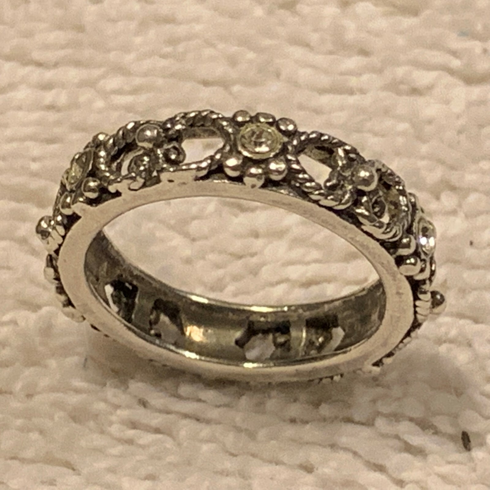 как выглядит Vintage Sterling Silver 925 Band Style Ring with Clear Accents Size 5.5. фото