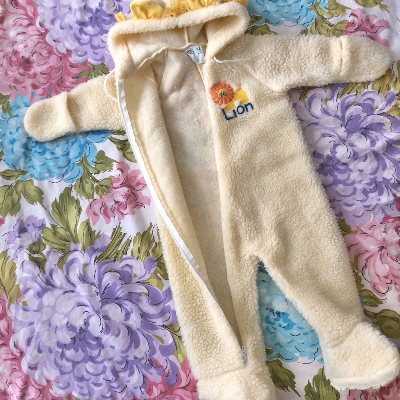 Vintage Dr. Denton Lion Pajamas Fleece Footed Bunting Costume w Hood 6-12 mos
